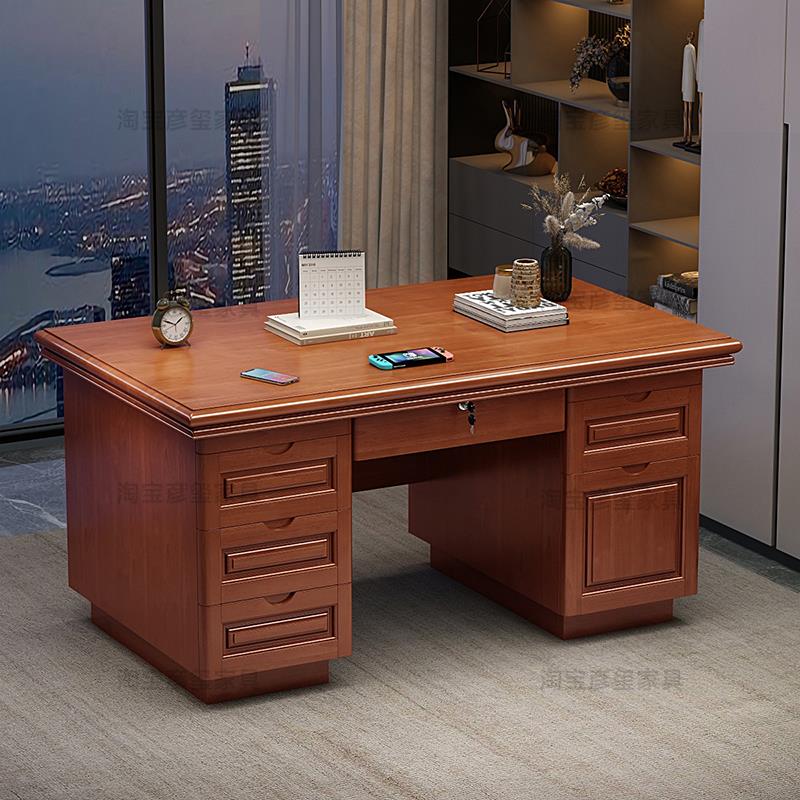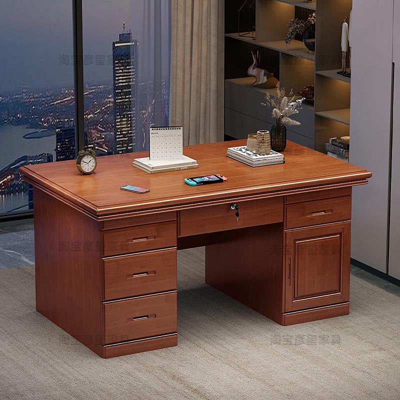 中式 电脑桌抽屉书桌办公桌桌 原木实木办公桌家用办公室职员台式