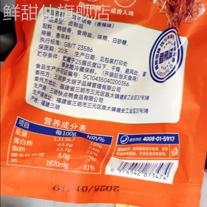 罗大胡子风干鸭架鸭锁骨青花椒福建特产零食便宜大包袋装 小吃