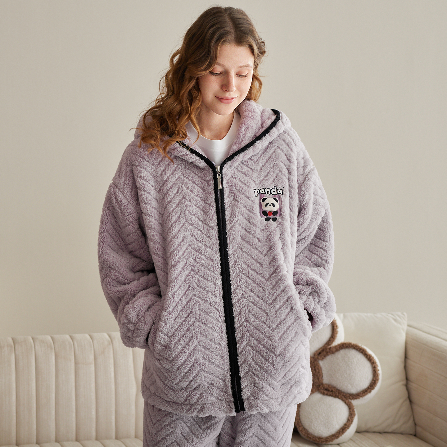 套装 长袖 抗静电卡通可爱休闲家居服 慕斯绒开衫 芬腾女士睡衣春秋季