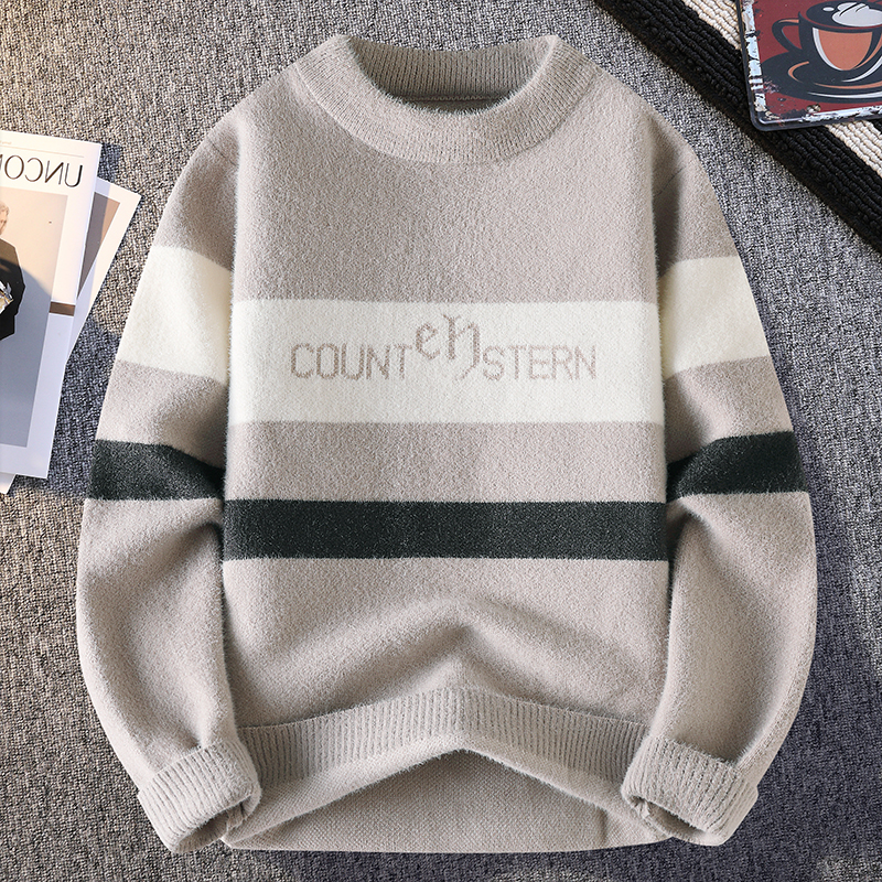 撞色情侣毛衣宽松套头衫 森马史努比系列毛衫 提花针织衫 满版 男冬季