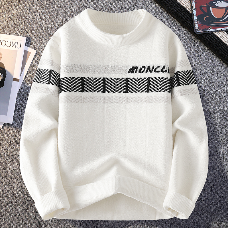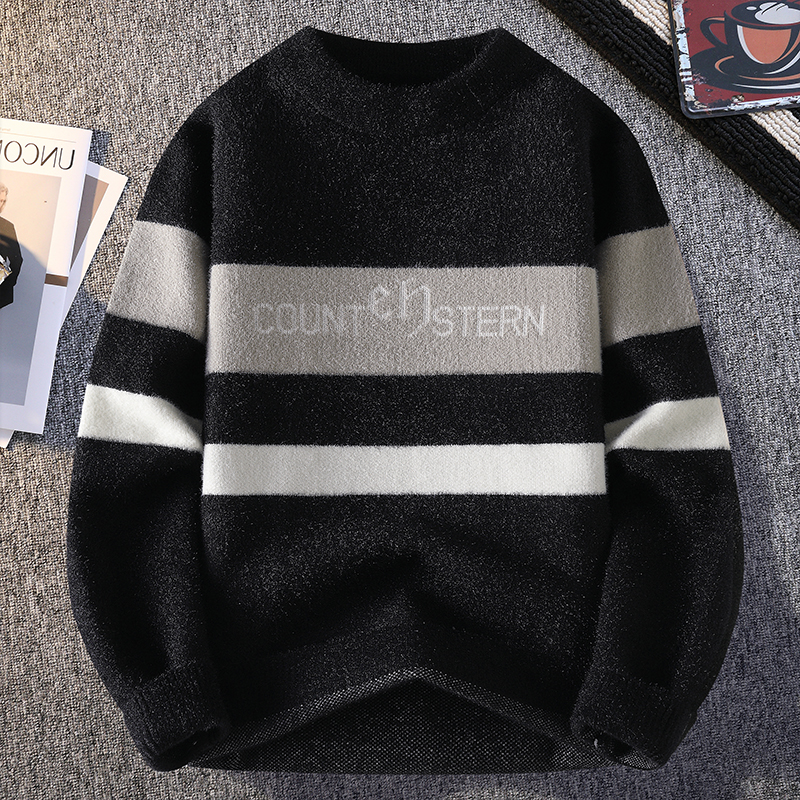 男款 保暖内搭针织衫 打底衫 GV真维斯黑色毛衣男秋冬加绒圆领男士