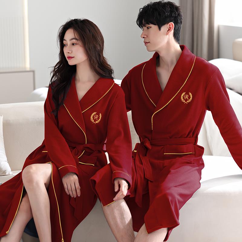本命年男士 中长款 睡衣浴1009c 秋季 秋冬红色结婚新婚情侣睡袍女款