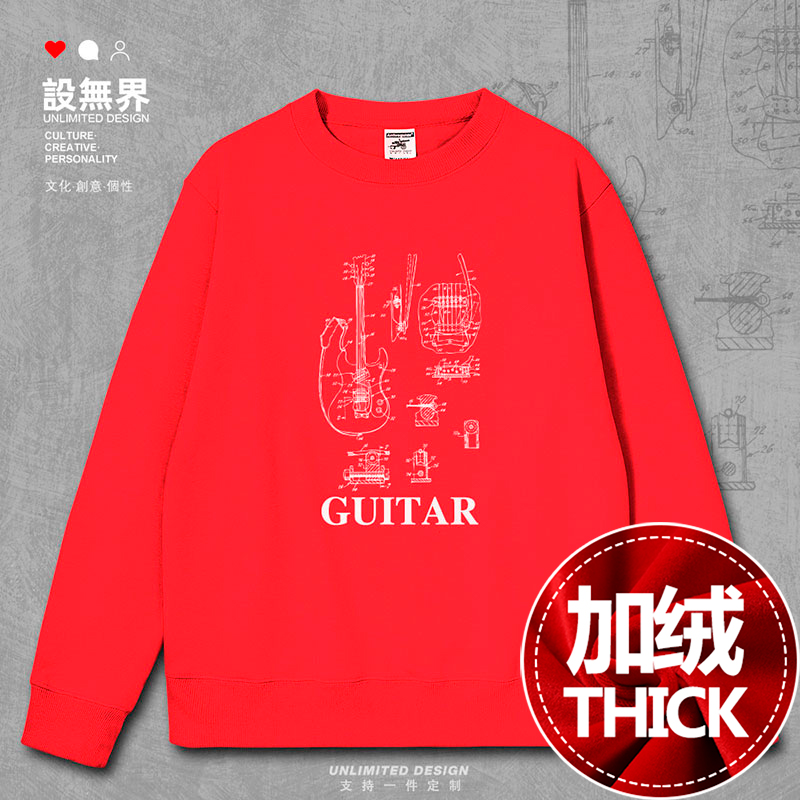 无界 潮设 电贝斯吉他设计线稿图分解图连帽卫衣男女个性 创意帽衫