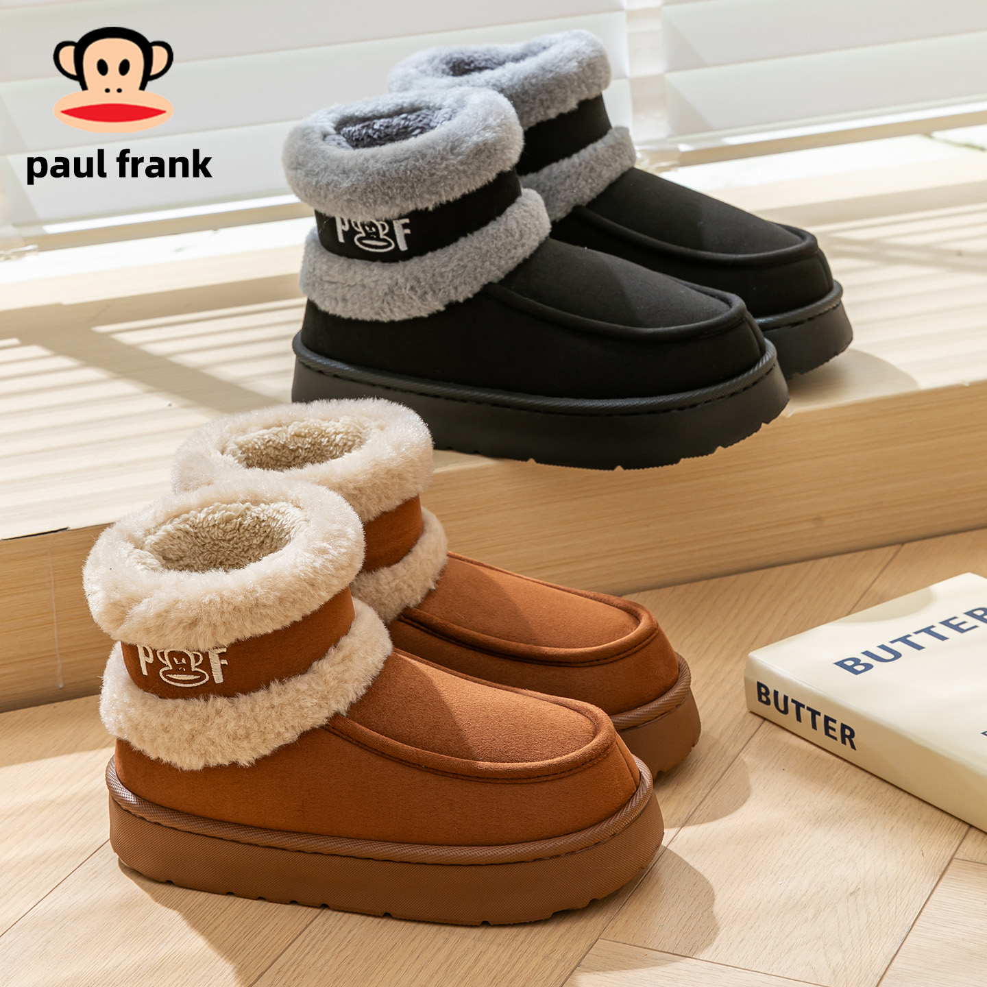 男冬 外穿高帮保暖加厚防风加绒毛毛棉拖鞋 双11大嘴猴棉鞋 女士冬季