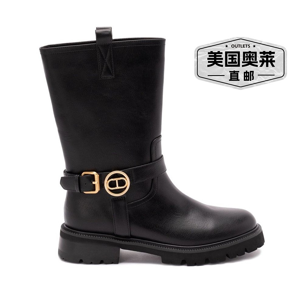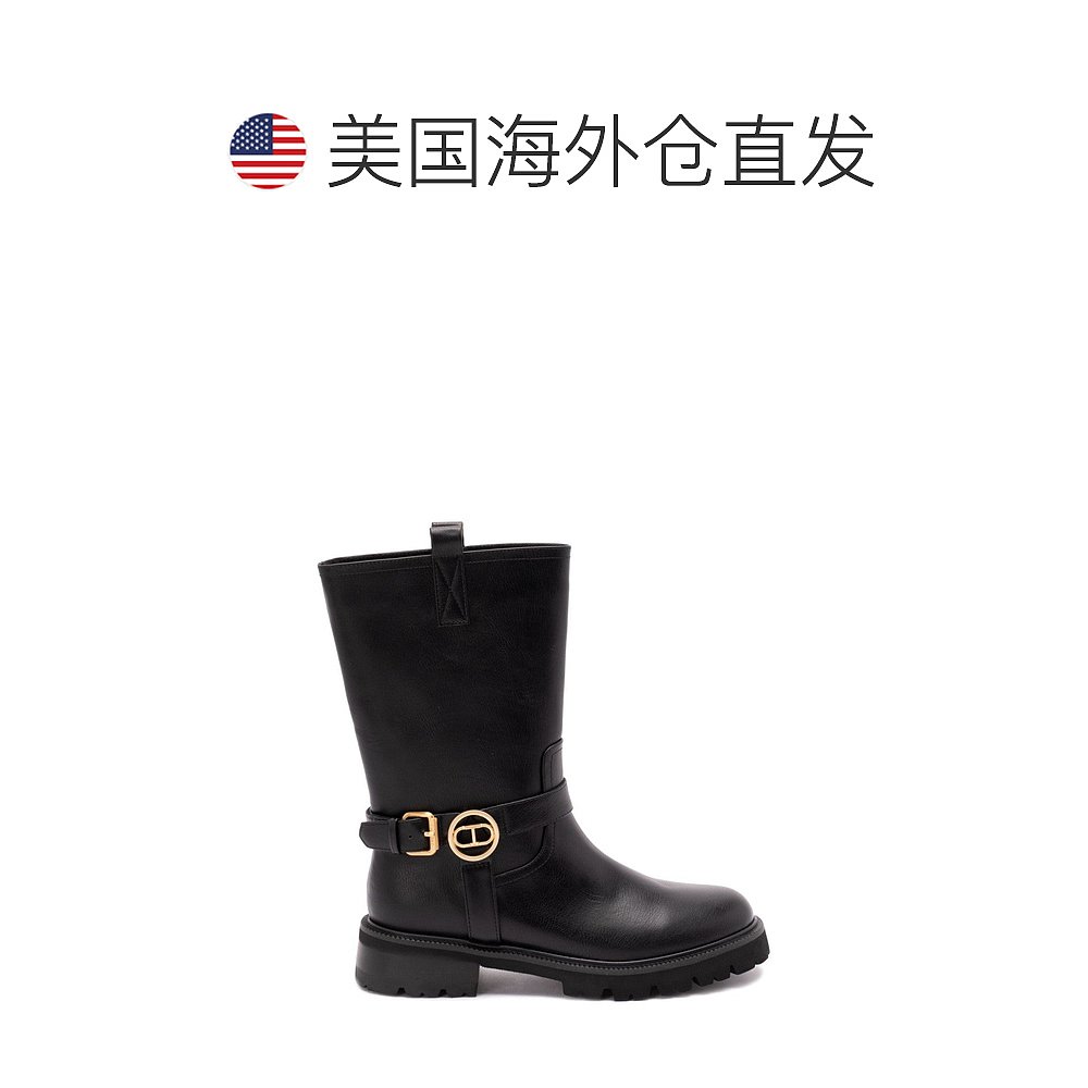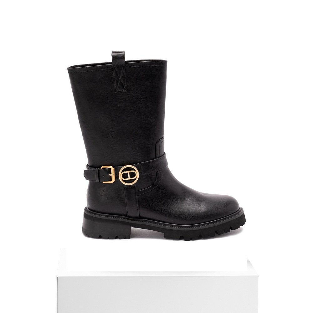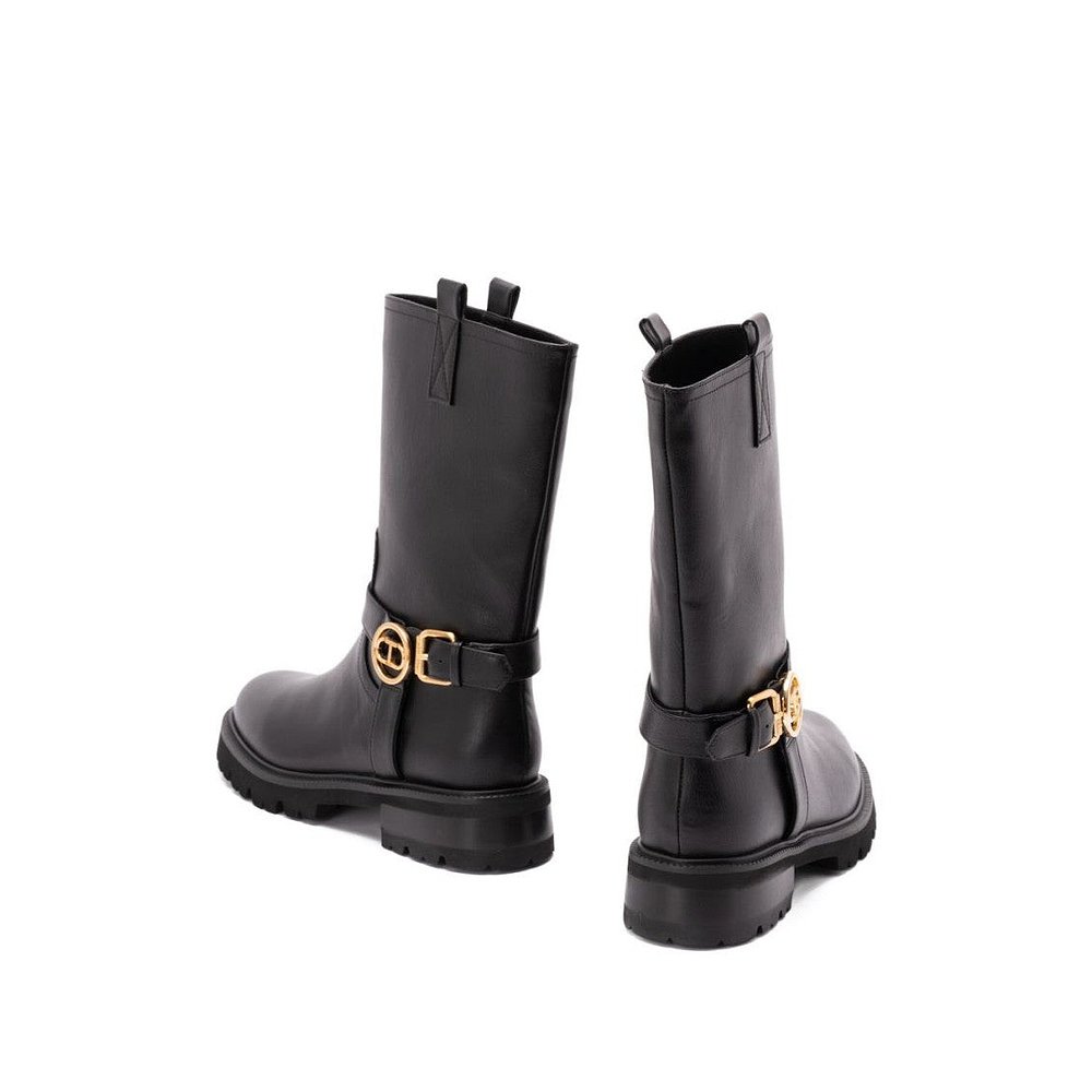 Black Leather Boots 自营twin Buckle Calf With Fasteni setMid
