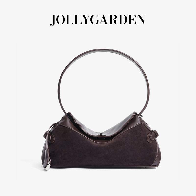 秋冬款 梧秋 磨砂皮棕色大容量通勤单肩斜挎手拎包 GARDEN JOLLY