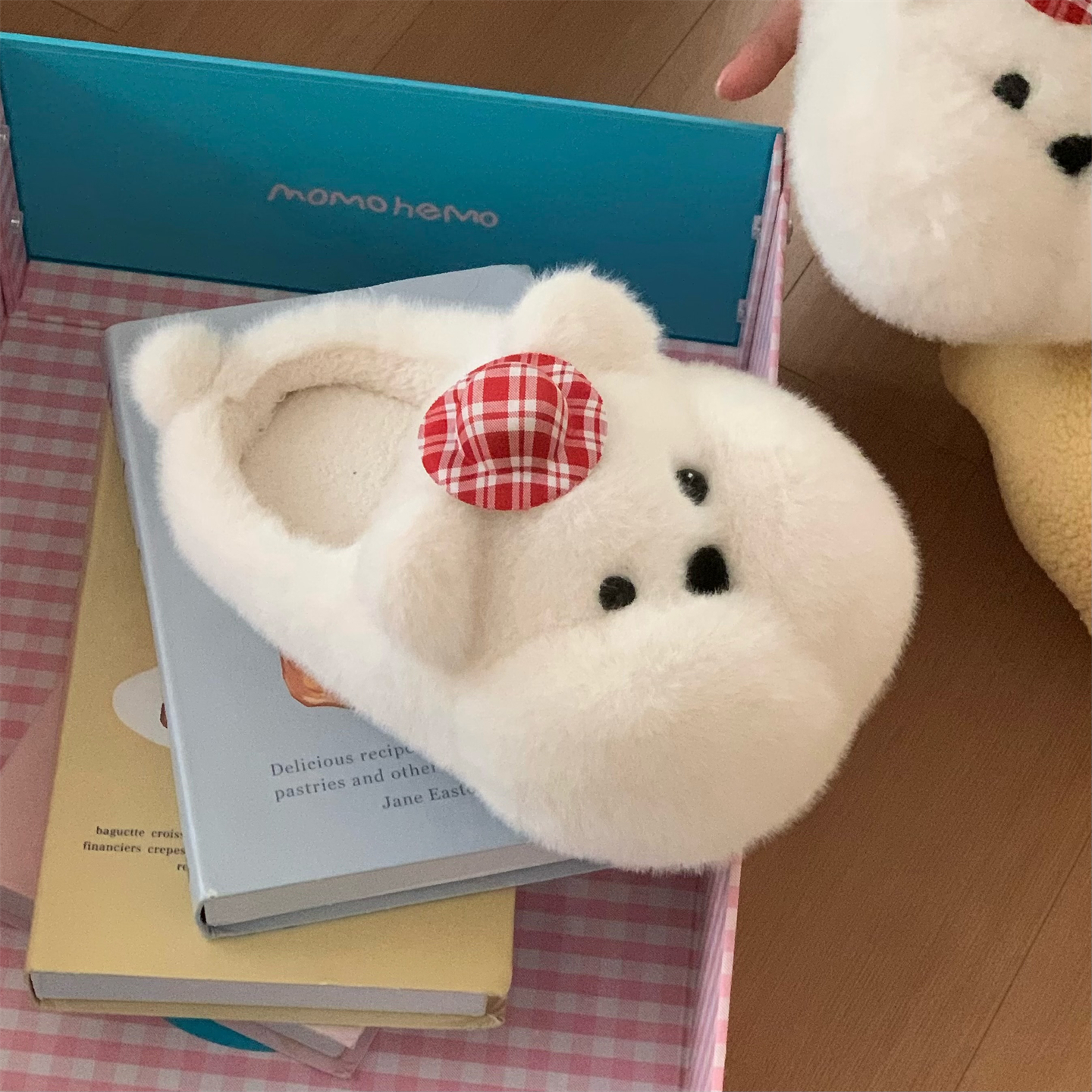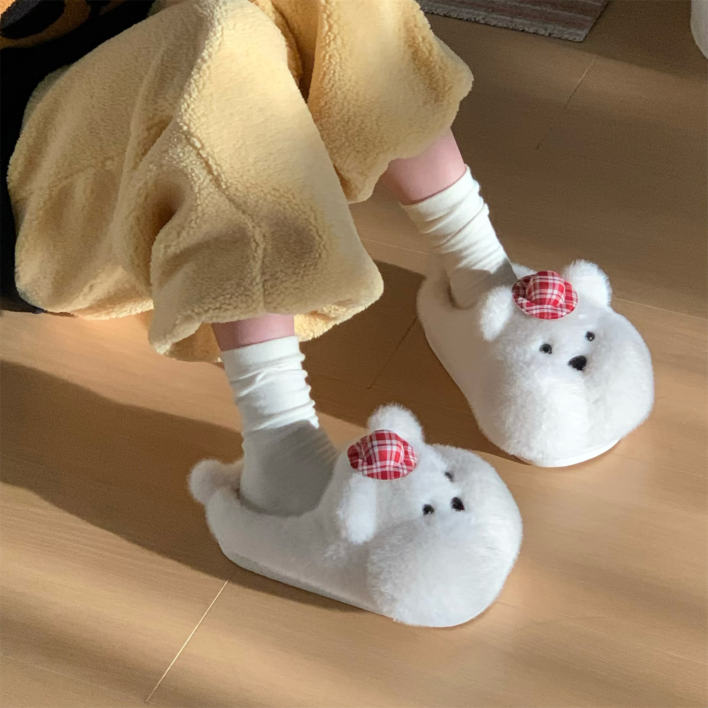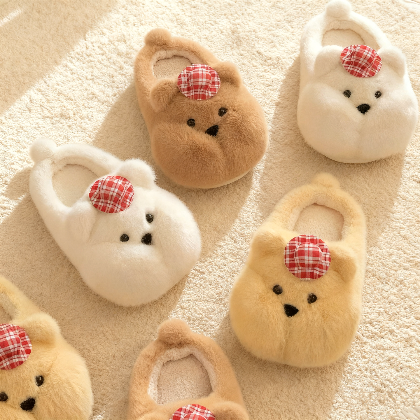 家用可爱奶呼呼小胖熊月子鞋 舒适ins棉拖鞋 防滑保暖女士冬毛毛鞋