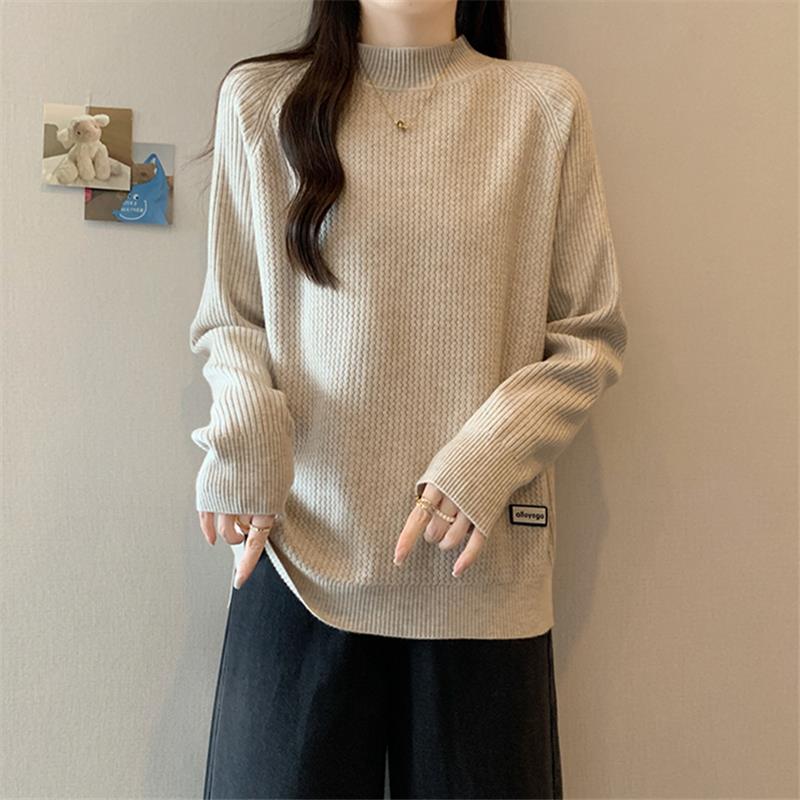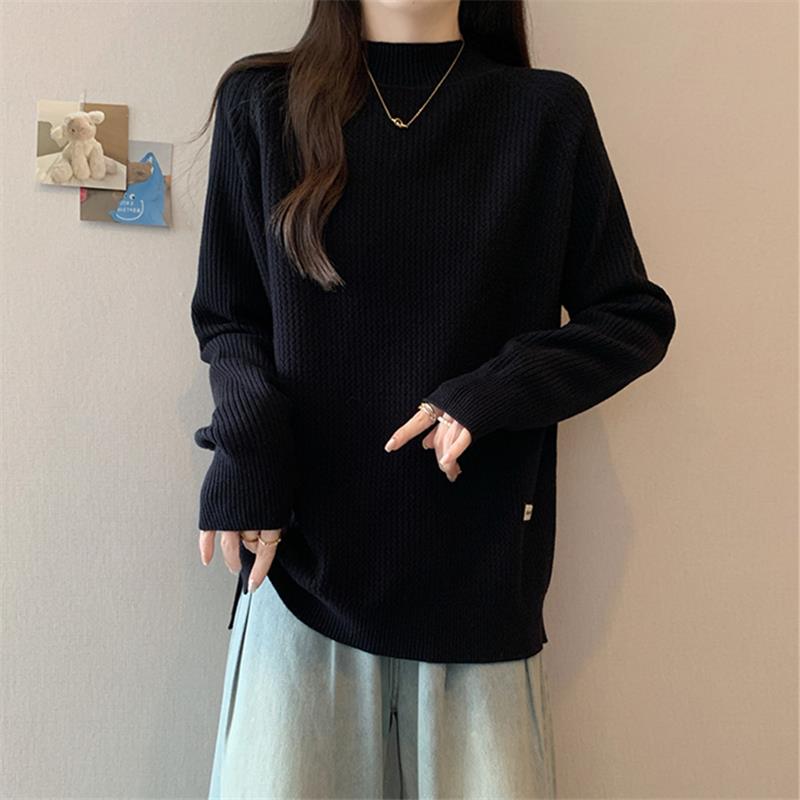 木耳边打底内搭毛衣上衣胖mm秋冬 女2025新款 大码 蕾丝半高领针织衫