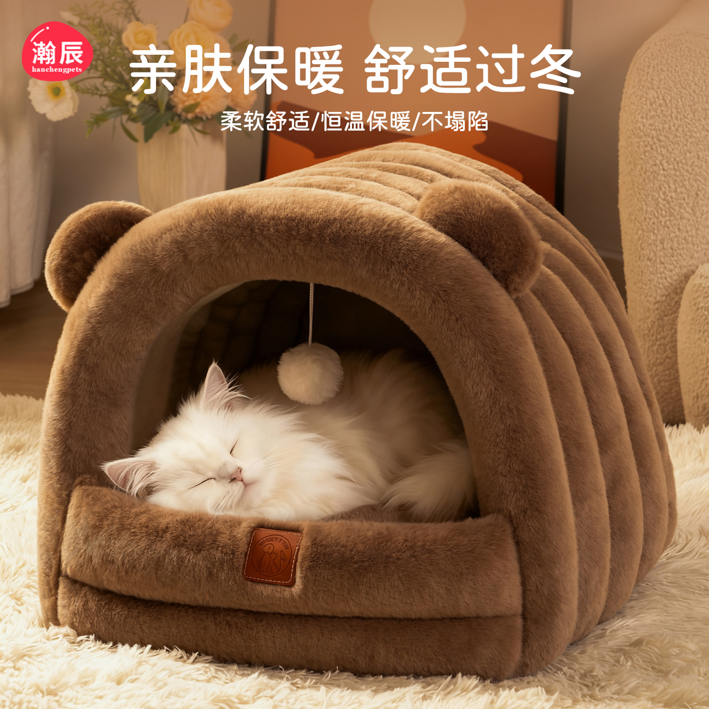 猫窝冬季 通用 保暖狗窝幼猫加厚半封闭可拆卸猫咪用品大型猫窝四季
