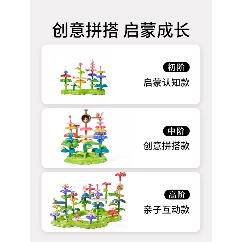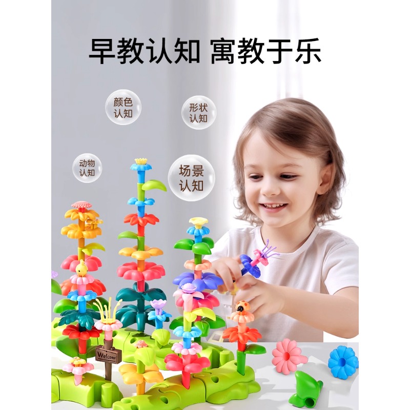3岁拼搭女男孩宝宝益智插花 乐乐鱼积木花园1 生日礼物专用