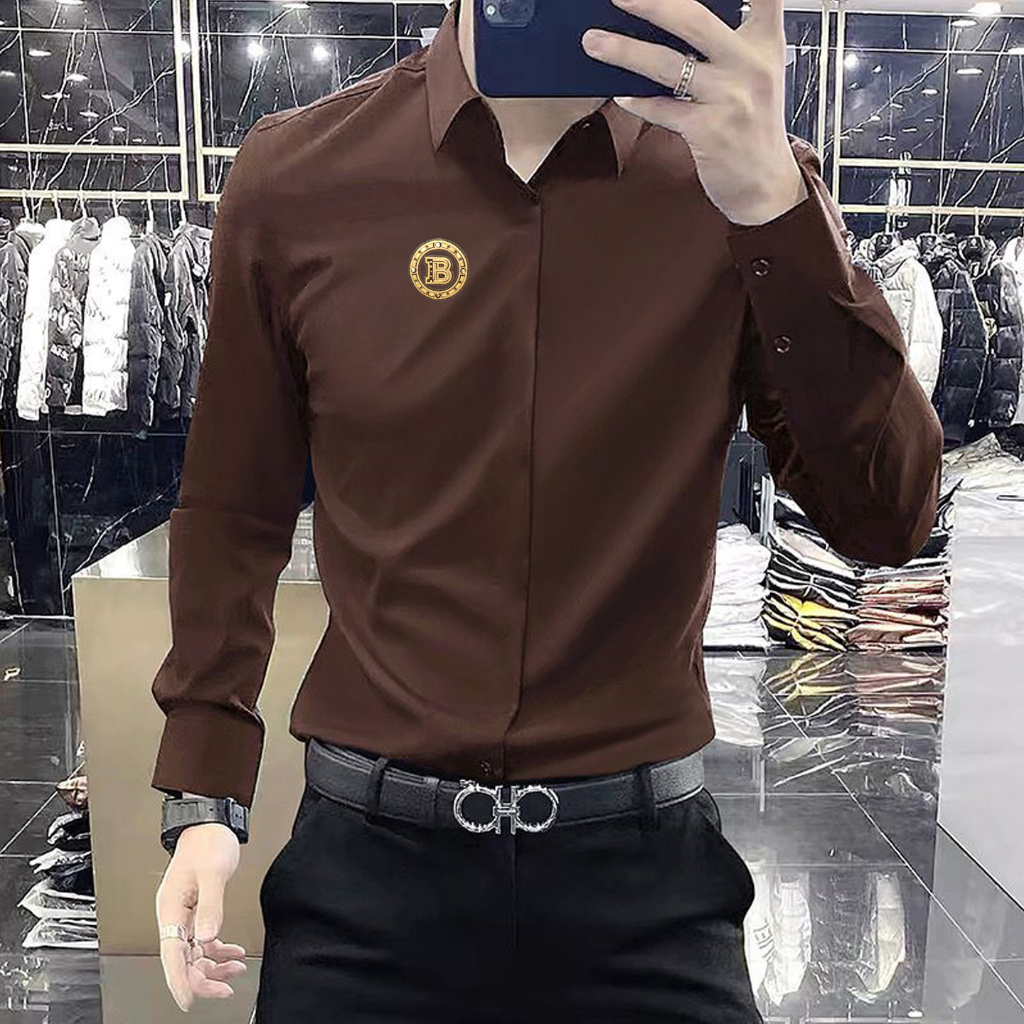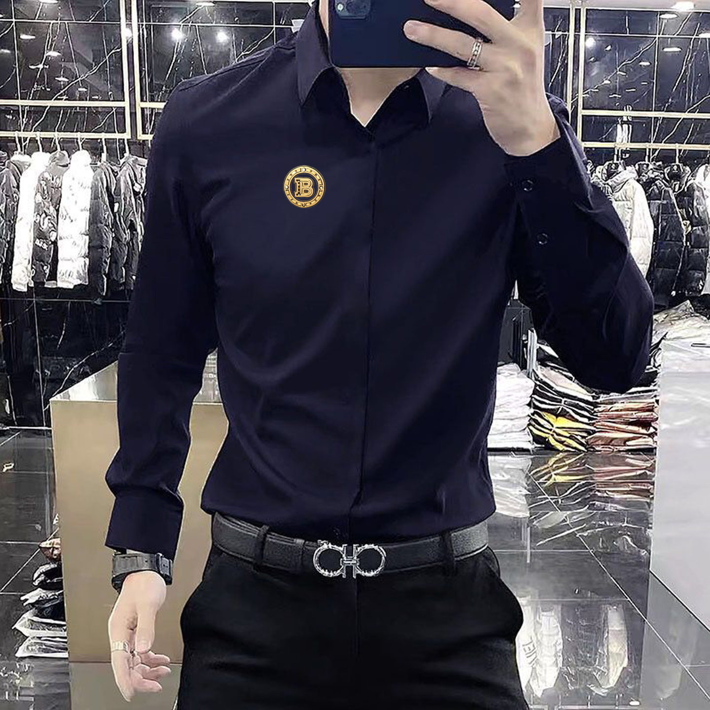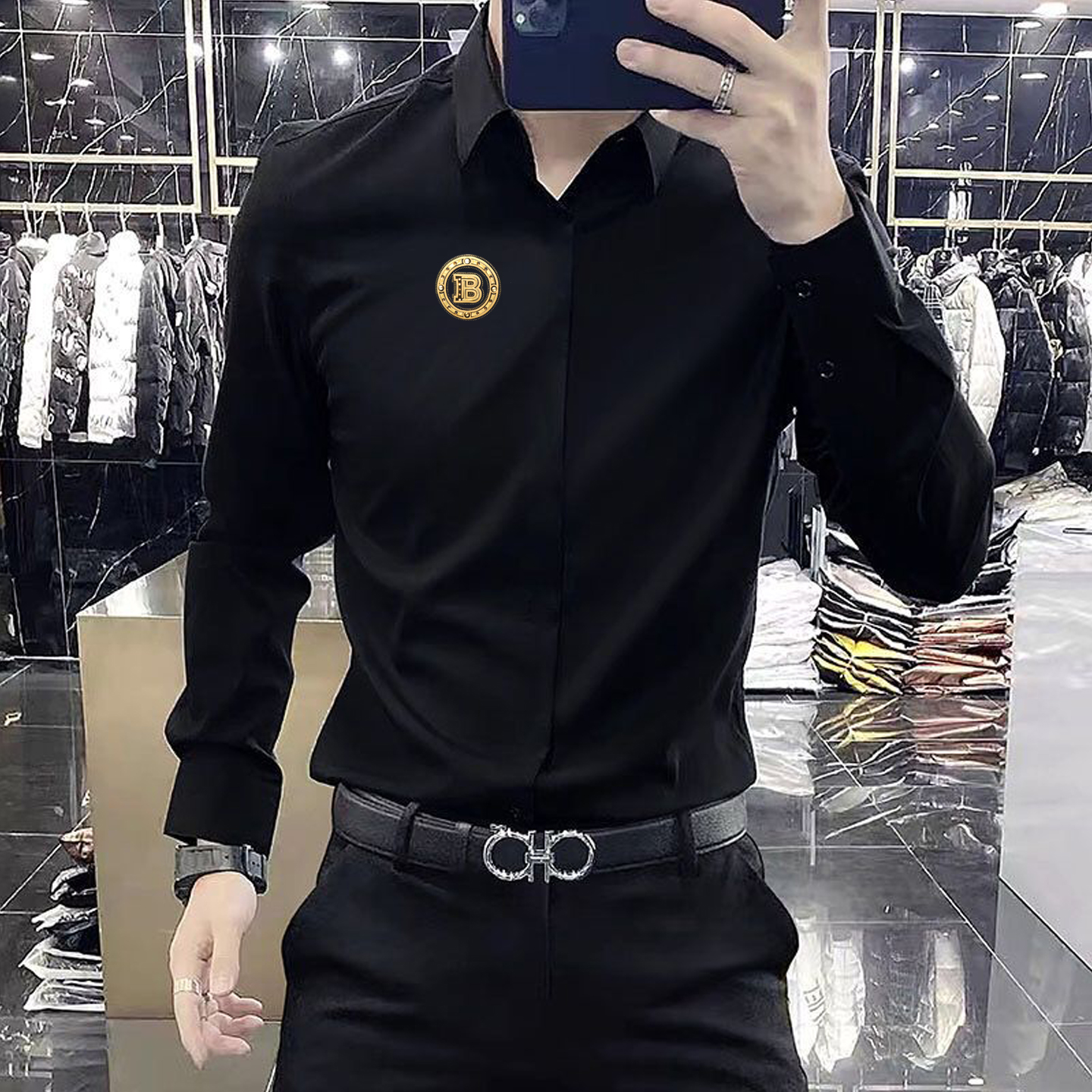休闲基础舒适通勤商务长袖 秋季 翻领衬衣上衣1243933 衬衫 HM男装