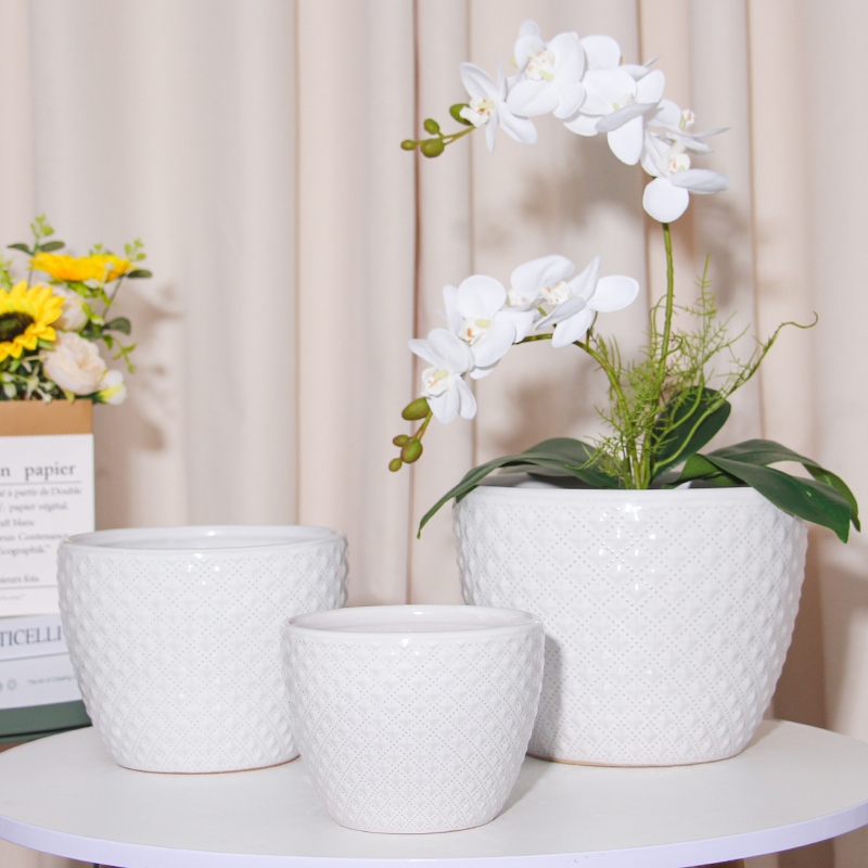 花盆陶瓷白色轻奢简约特价 清仓大号带托盘家用绿萝吊兰多肉小花盆