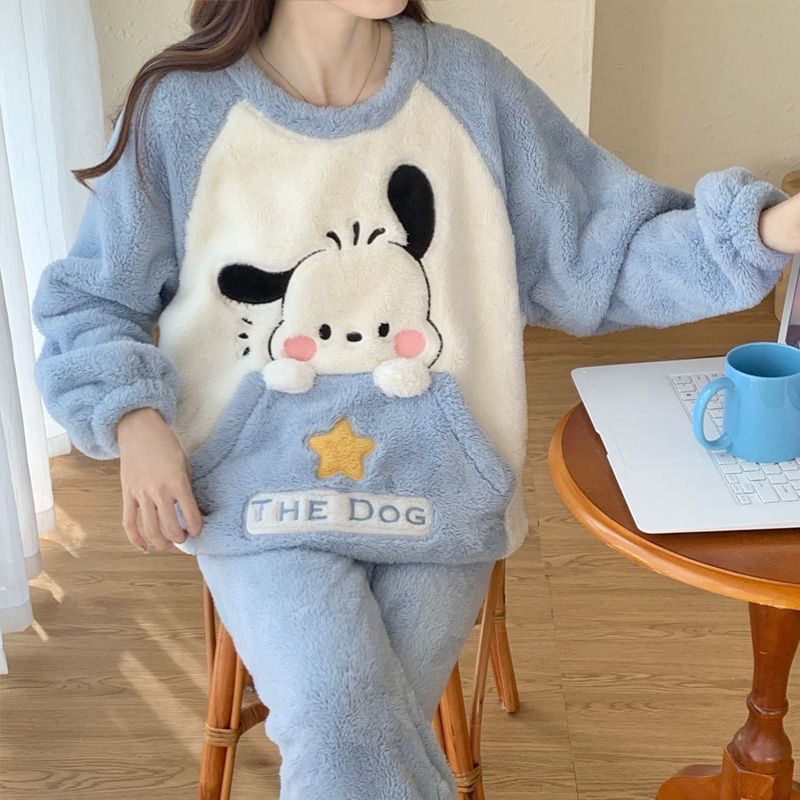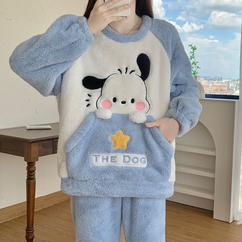 帕恰狗可外穿法兰绒套装 珊瑚绒睡衣女2025年新款 可爱居服秋冬季