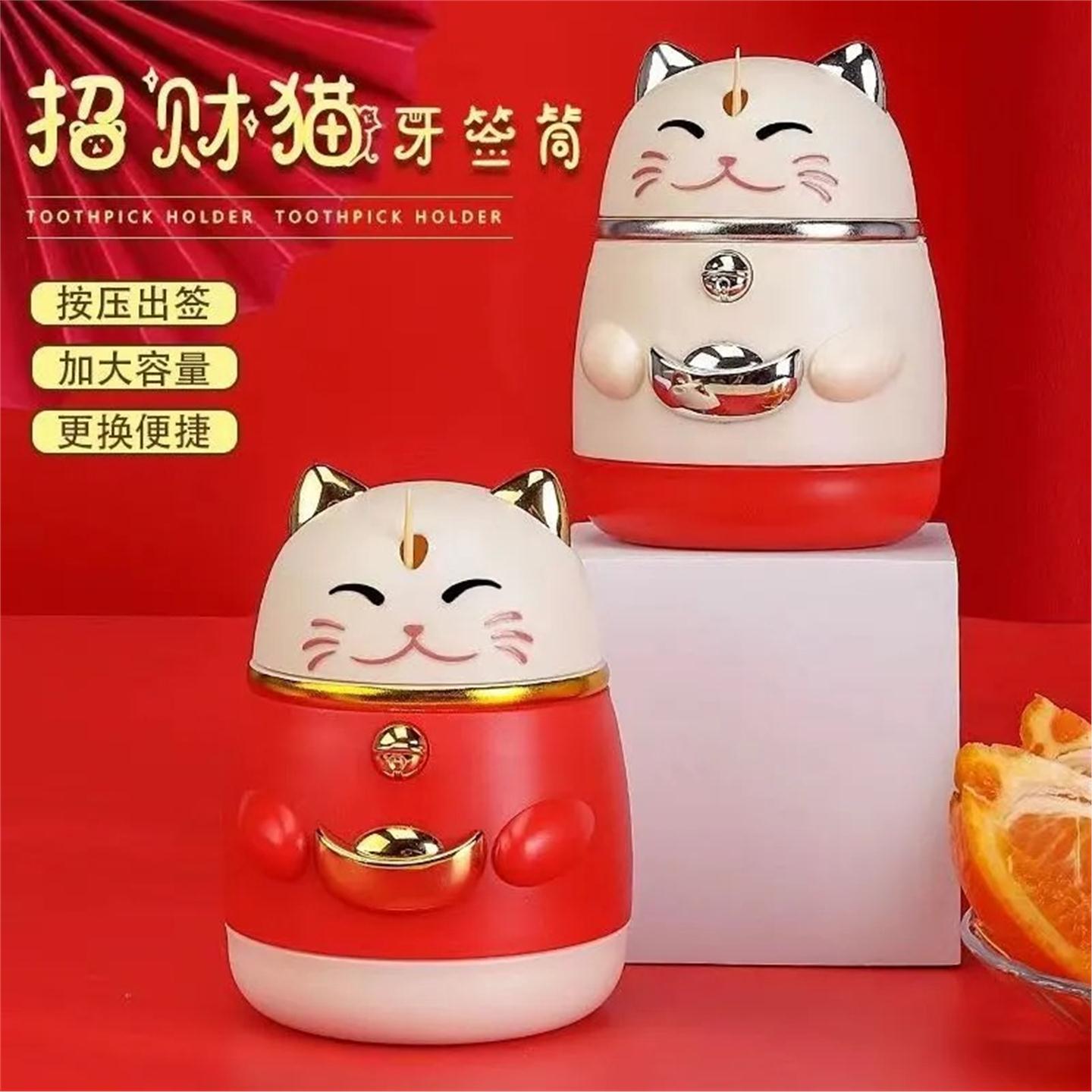 招财猫出牙签筒式 罐高按压自牙签颜值高档创意家用动弹牙签盒 新款
