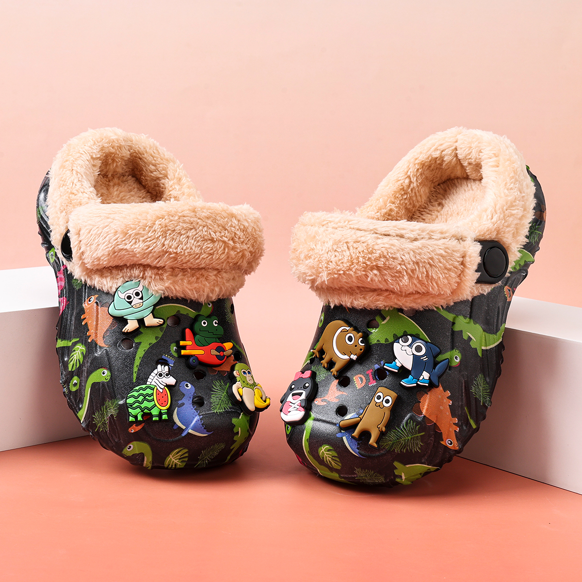 青少年室内居家宝宝毛毛绒包跟棉拖鞋 卡皮巴拉儿童棉拖鞋 男童冬季