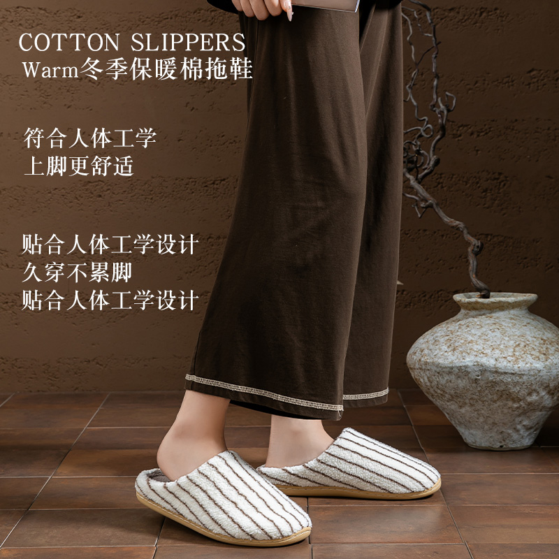 加厚家居室内保暖静音防滑情侣棉鞋 2025新款 男秋冬季 棉拖鞋 女 日式