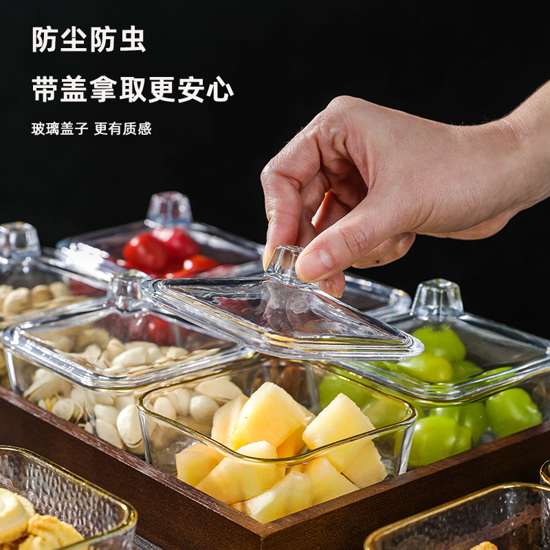 玻璃水果盘客厅家用轻奢高端结婚2025新款 小精致中古风带盖干果盘