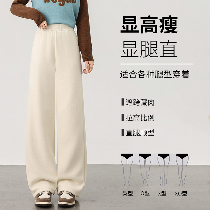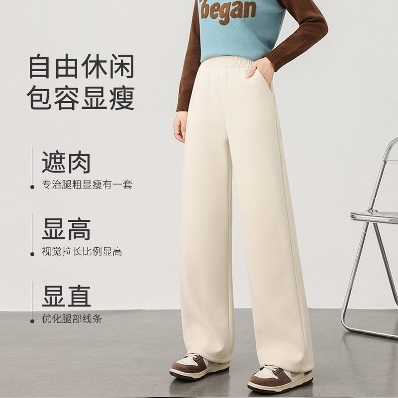 直筒裤 NOME 女秋冬高腰垂感加绒加厚窄版 羊毛糯米阔腿裤 子 服饰