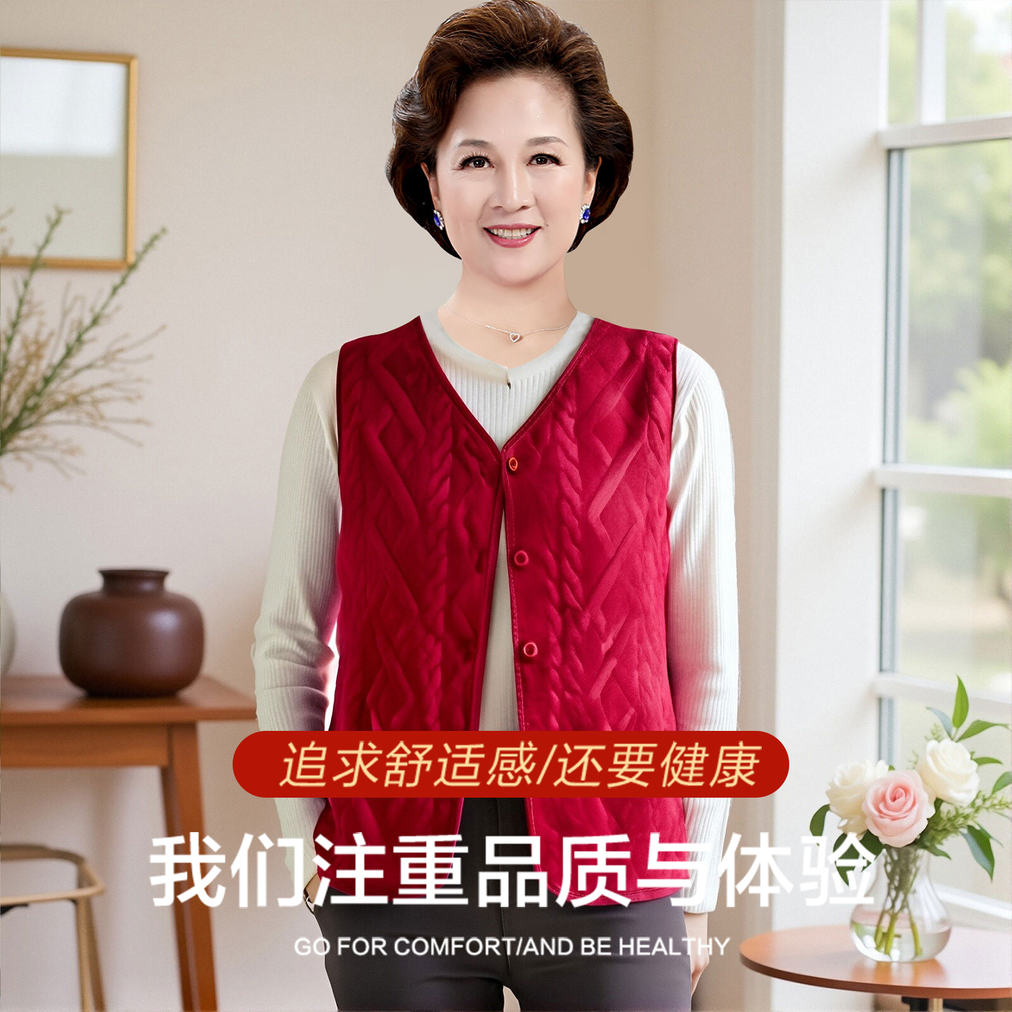 宽松打底上衣 奶奶开衫 妈妈保暖背心女士冬季 加绒加厚中老年人女装