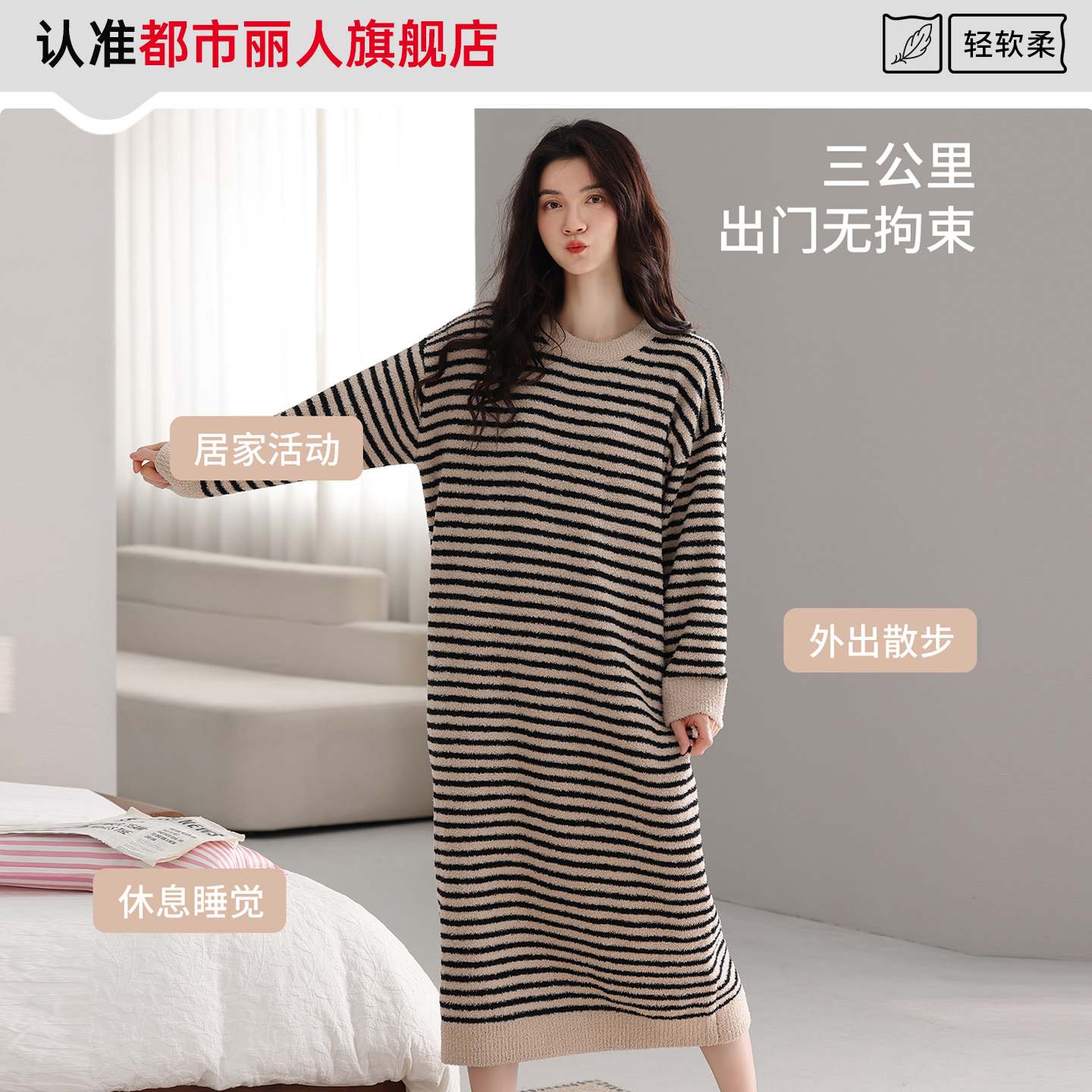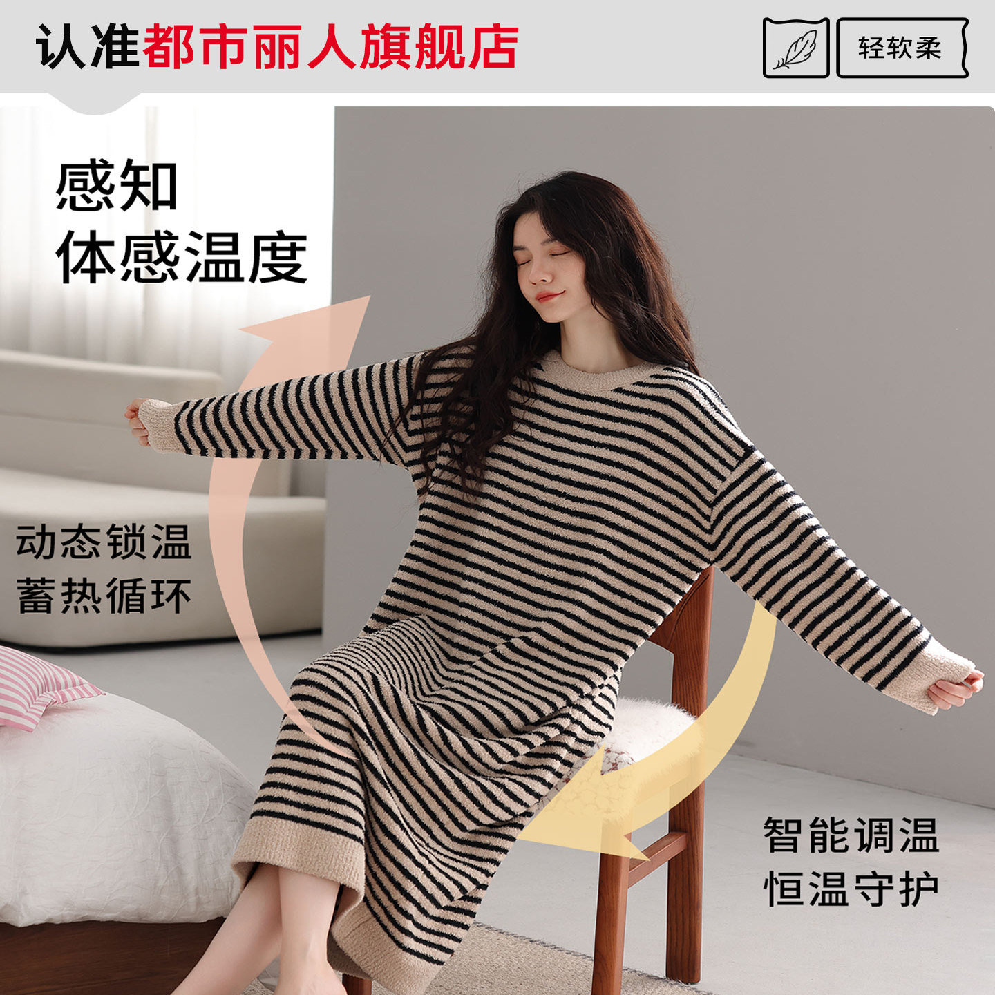 都市丽人半边绒睡裙女款 加绒加厚睡衣女连衣裙家居服 秋冬2025新款