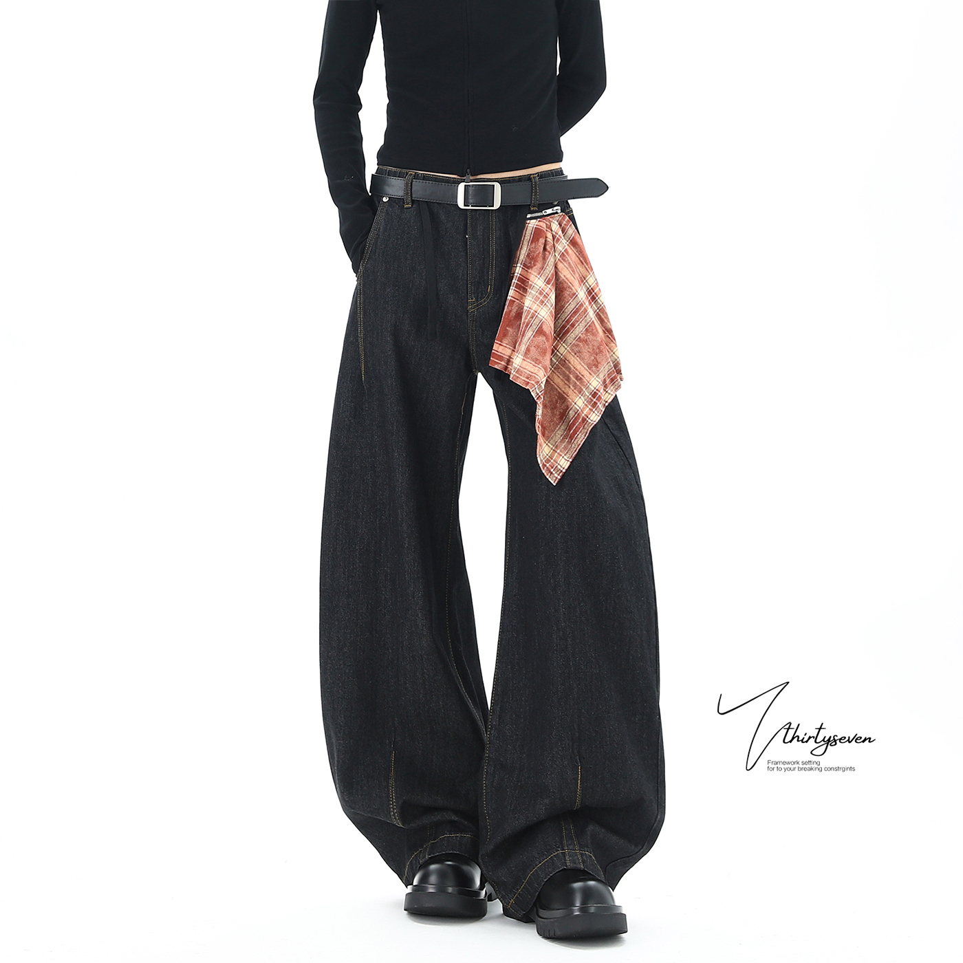 潮牌cleanfit方巾阔腿裤 男秋季 子 高街立体剪裁拖地牛仔裤 V37美式
