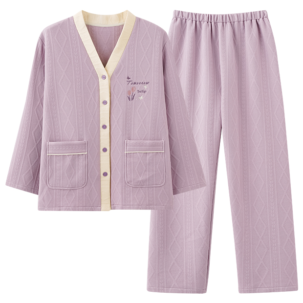 妈妈家居服套装 加厚夹层冬天保暖少女款 长袖 空气棉睡衣女士秋冬季