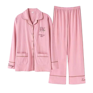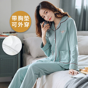 家居服套装 中年妈妈睡衣女带胸垫一体春秋款 可外穿秋冬季 大码 长袖