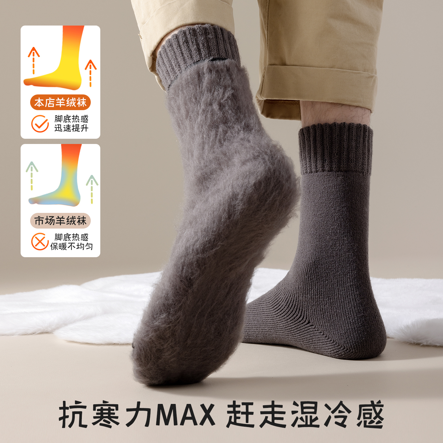 厚羊绒袜子男士 中筒袜加绒加厚羊毛袜东北防寒超厚保暖长袜 秋冬季