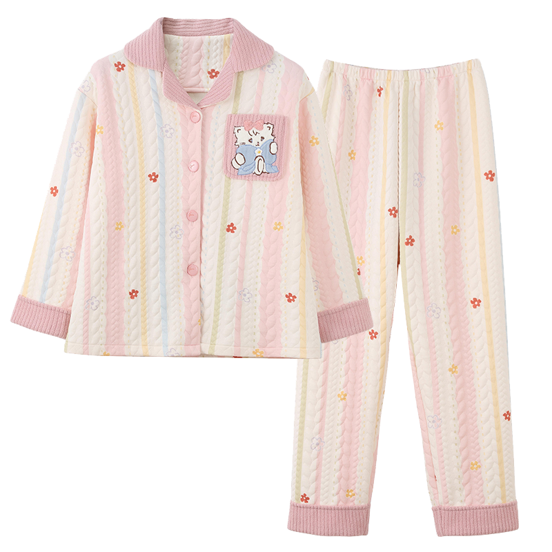 猫人空气棉睡衣女加厚夹层秋冬2025新款 卡通可爱可外穿家居服套装