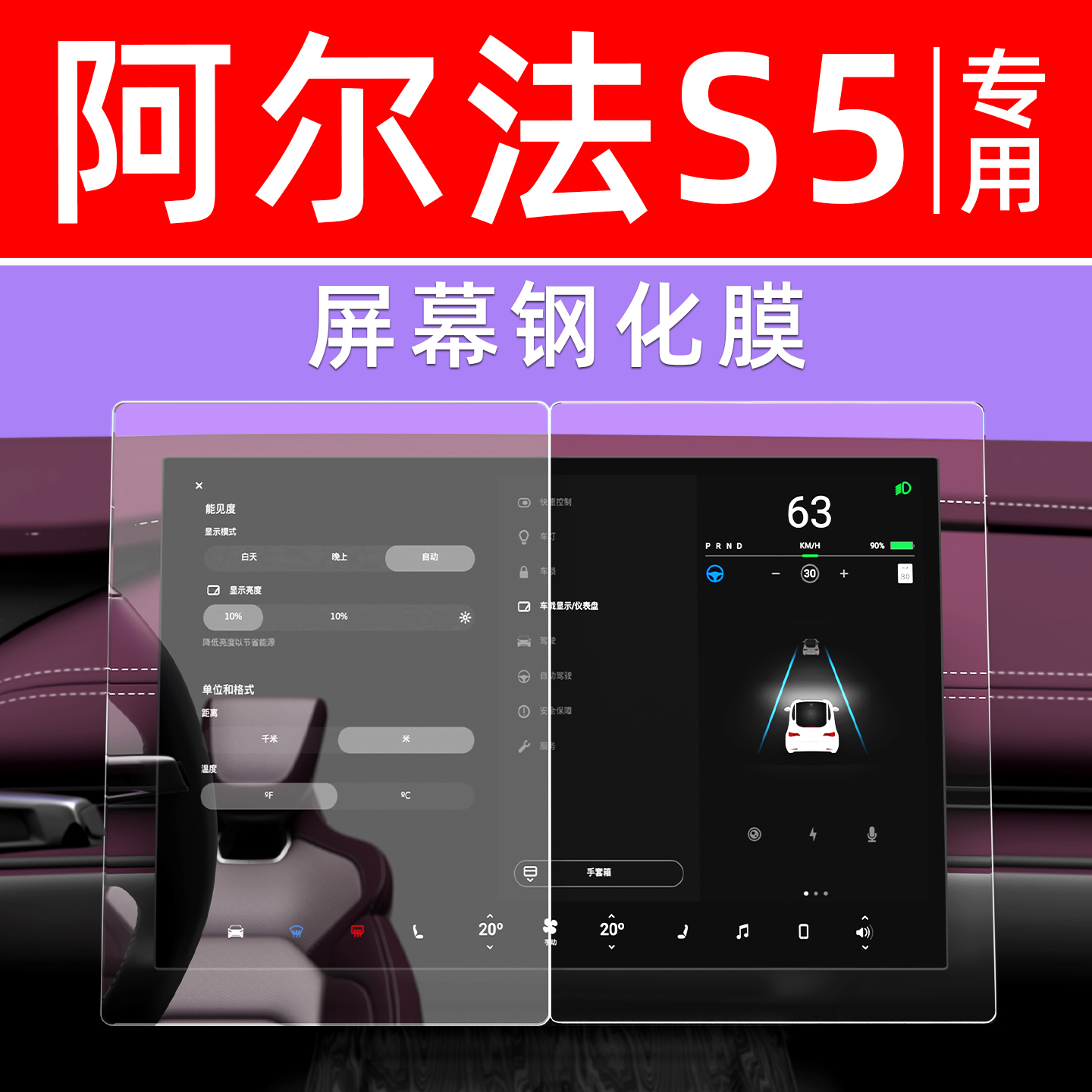 极狐阿尔法S5屏幕钢化膜中控车机导航贴膜汽车显示大屏保护膜专用