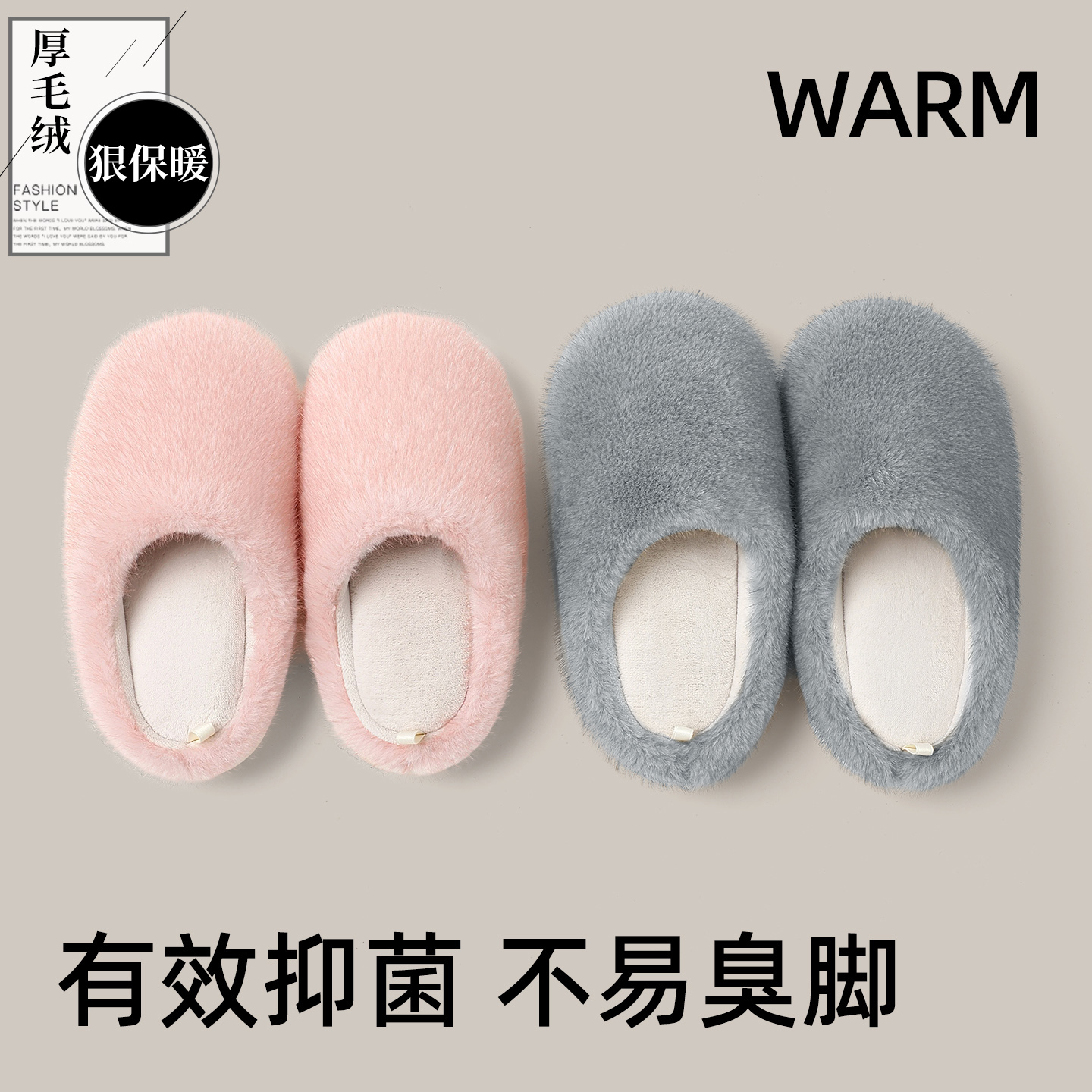 室内家居2025新款 秋冬季 防滑防臭无声保暖毛绒棉拖 女款 静音棉拖鞋