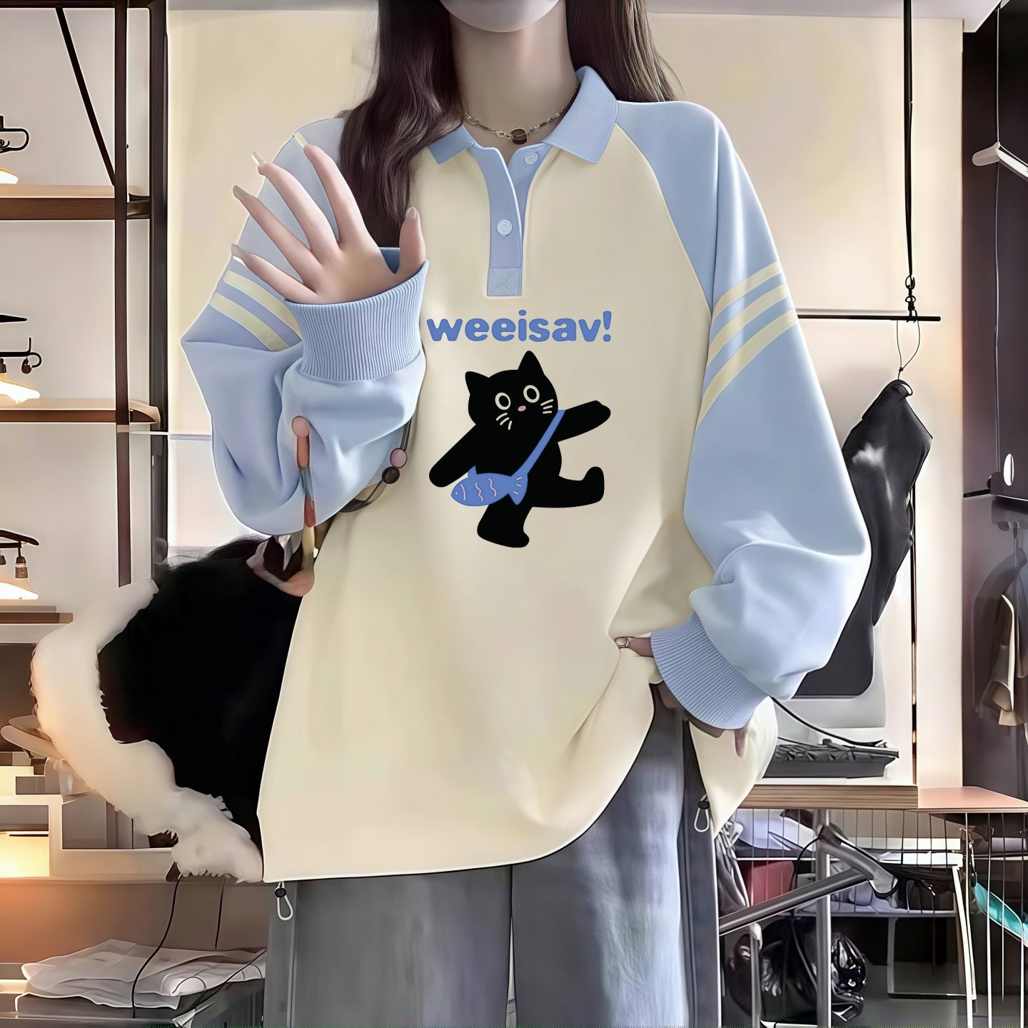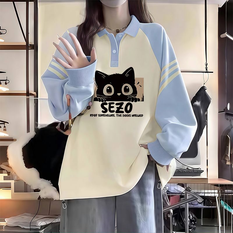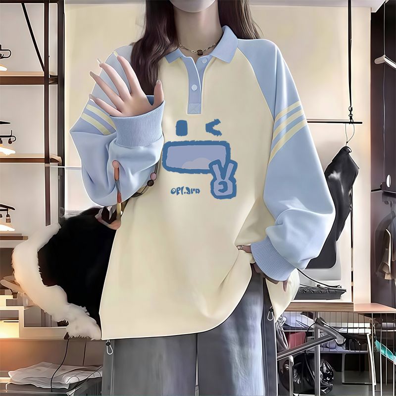 polo领卫衣少女春秋2025新款 t恤上衣服外套 初中高中学生宽松长袖