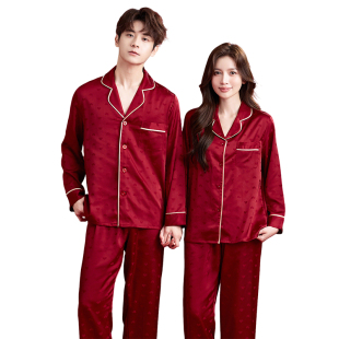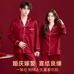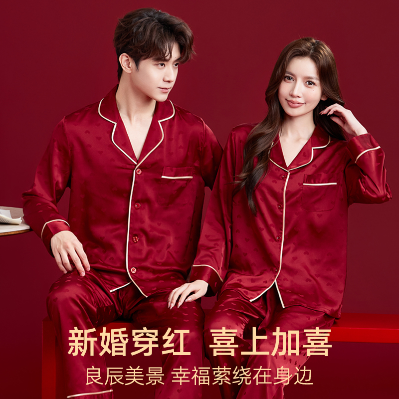 红豆居家红色情侣睡衣结婚纯棉男本命年春夏季 新婚礼物 家居服套装