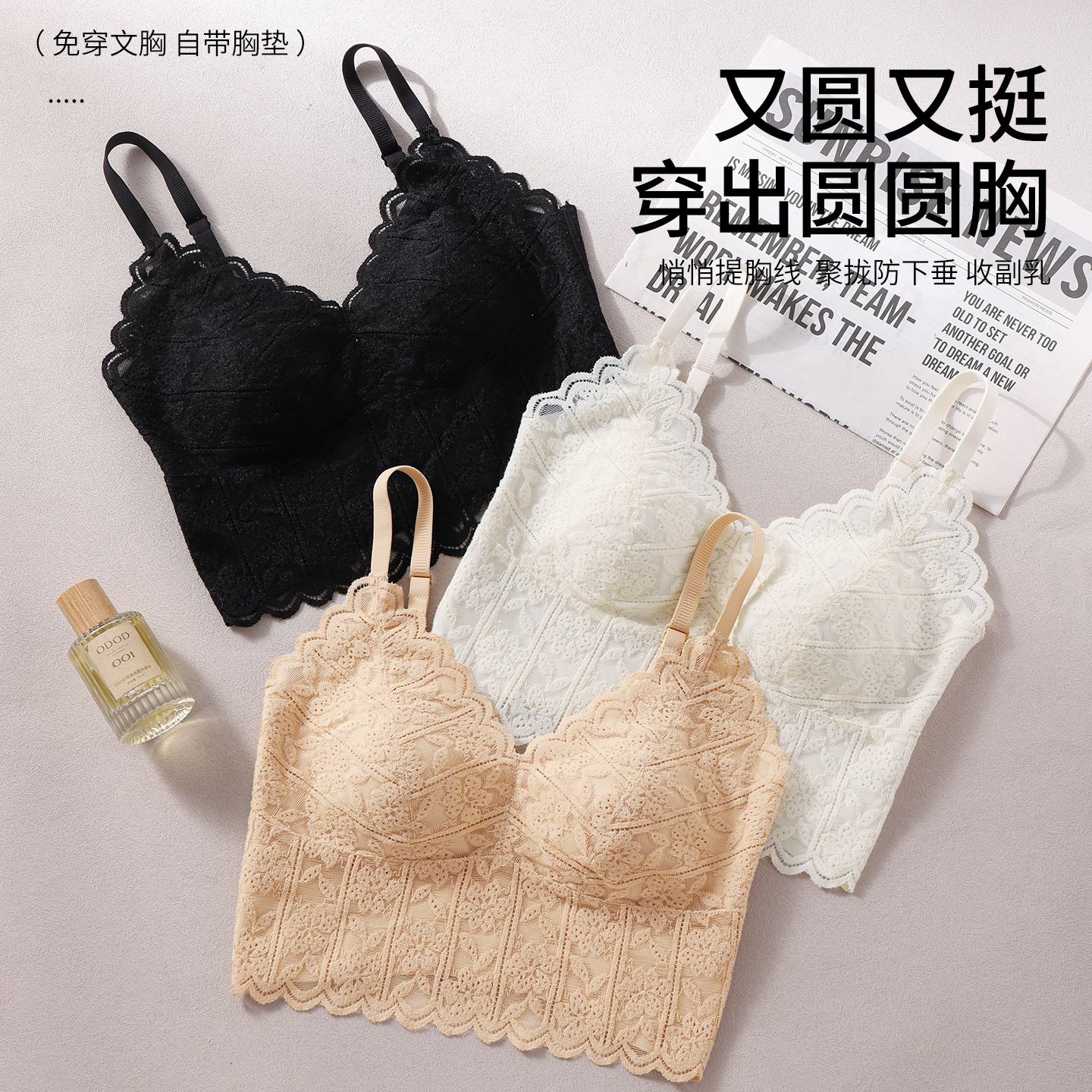 婷美蕾丝性感保暖吊带背心女士带胸垫可外穿新款 显瘦打底内衣 修身