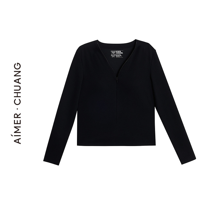爱慕·CHUANG一件出门秋冬女士V领长袖 带胸垫打底上衣CA722072