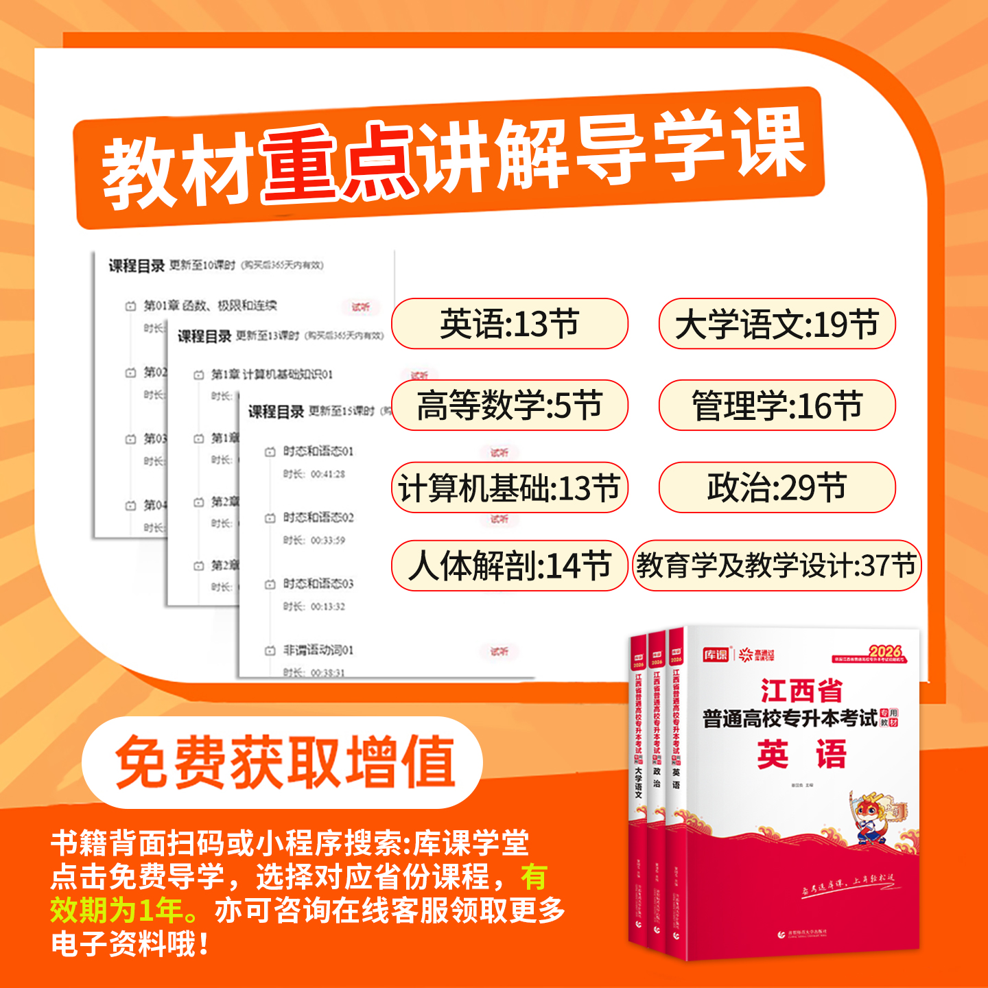 库课2026新版 江西专升本英语政治计算机必刷2000题库江西省专升本考试管理经济教育学语文高等数学信息技术人体解剖学复习资料网课