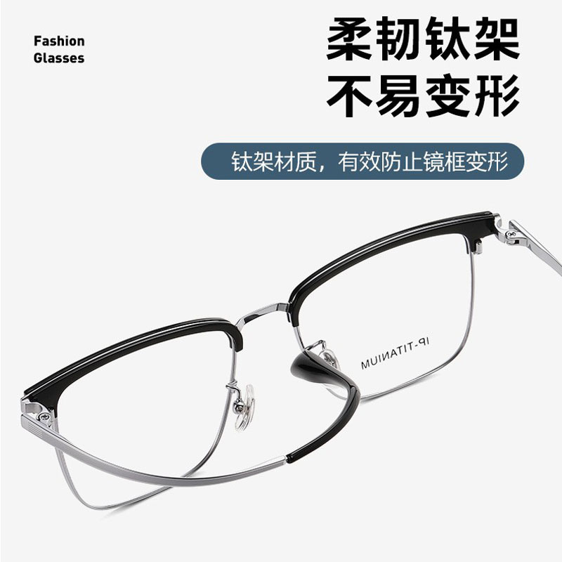 超轻纯钛半框近视眼镜框男款 可配度数镜片专业网上配防蓝光眼睛架