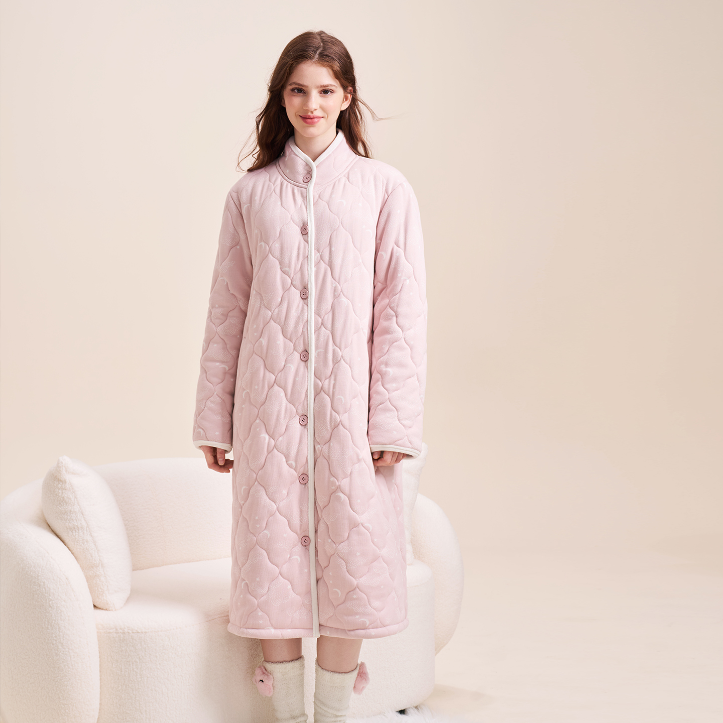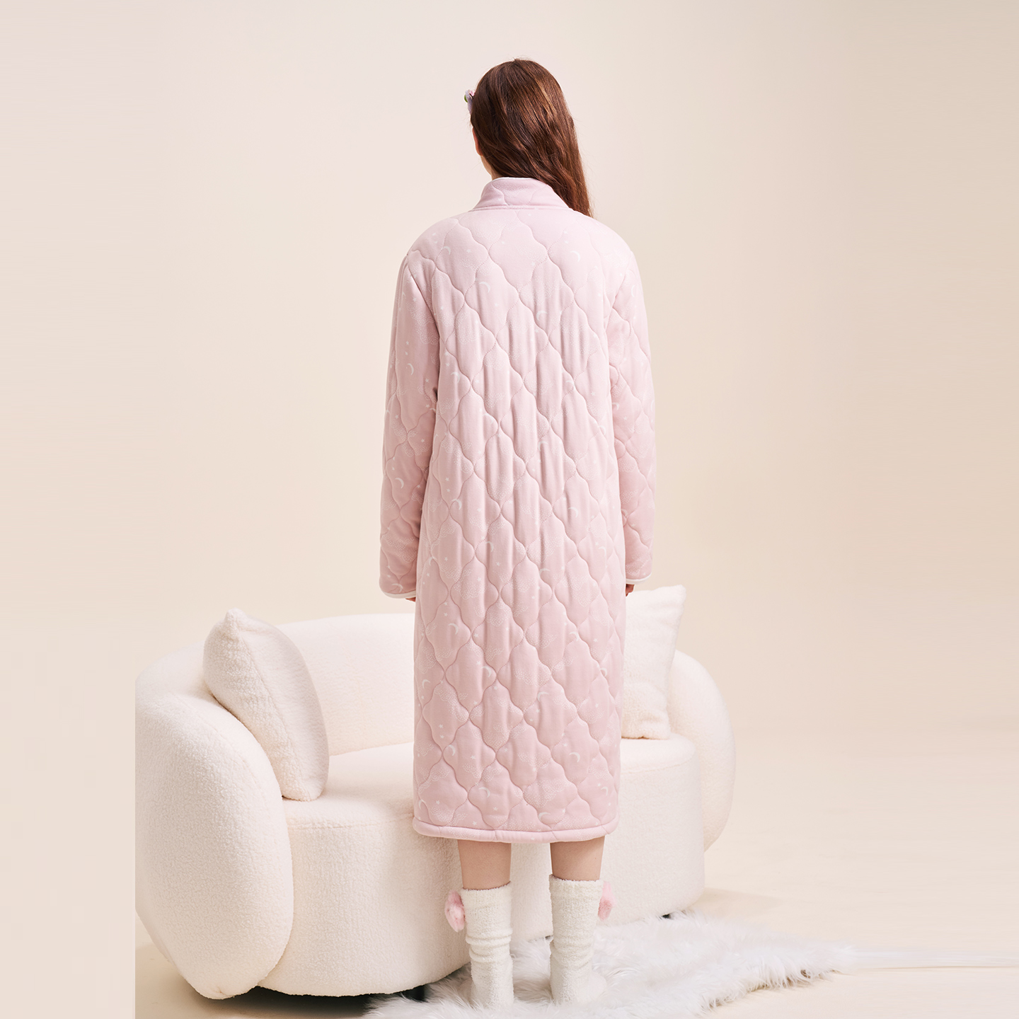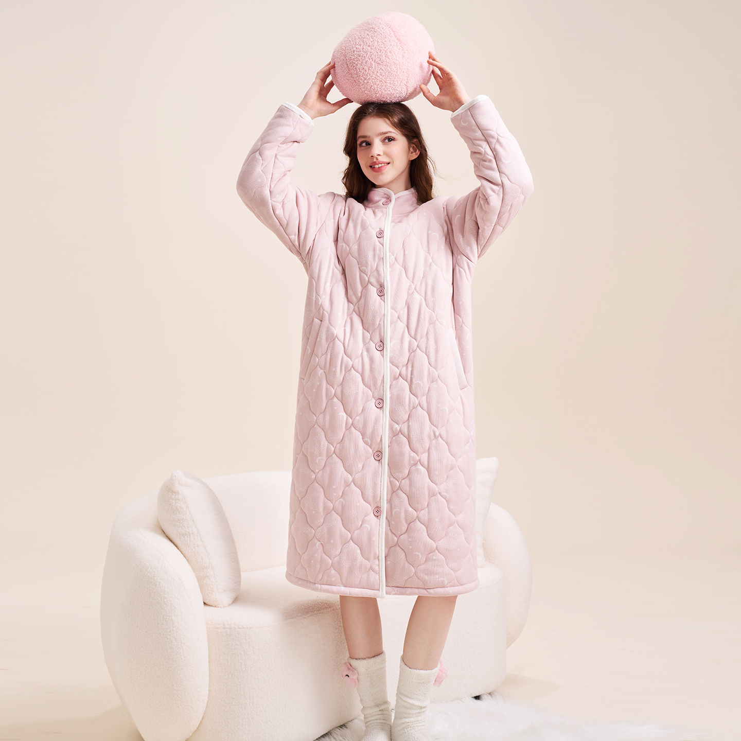 美标三层加厚夹棉中长款 睡袍女咖啡碳保暖可外穿休闲棉家居服睡衣