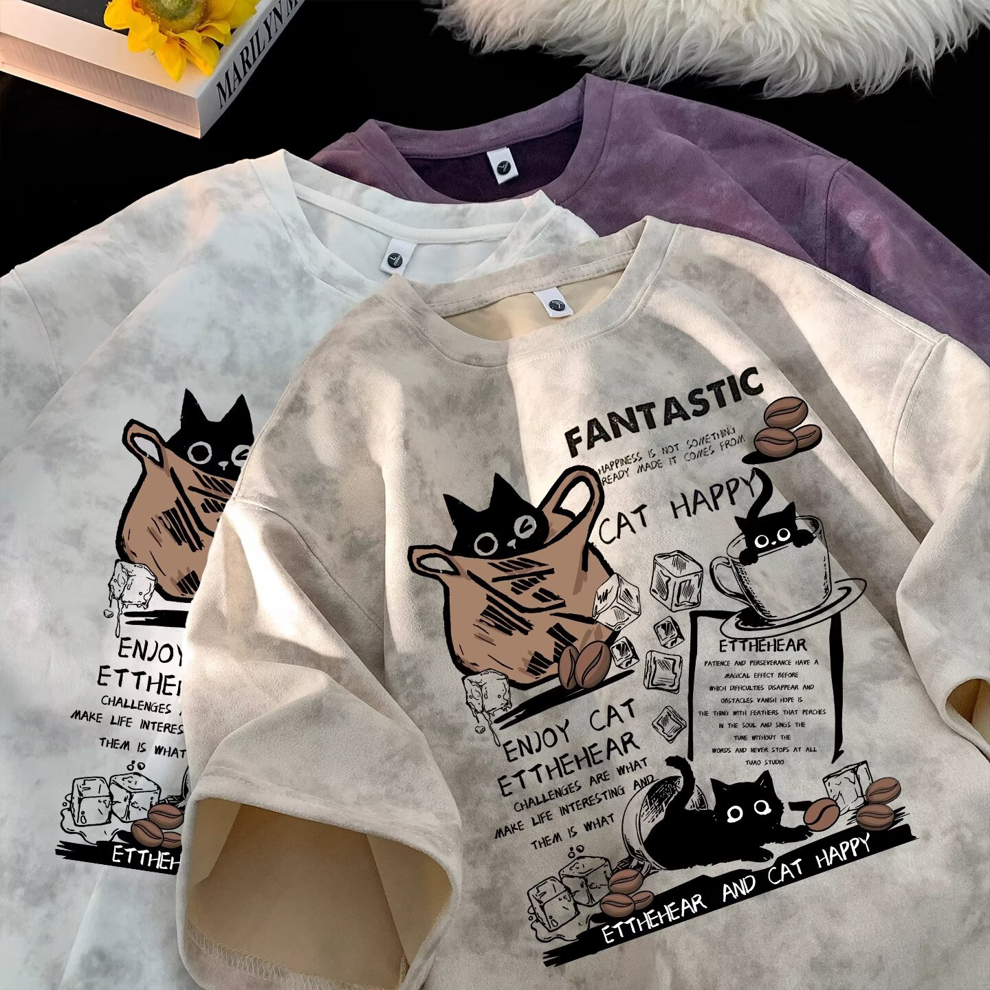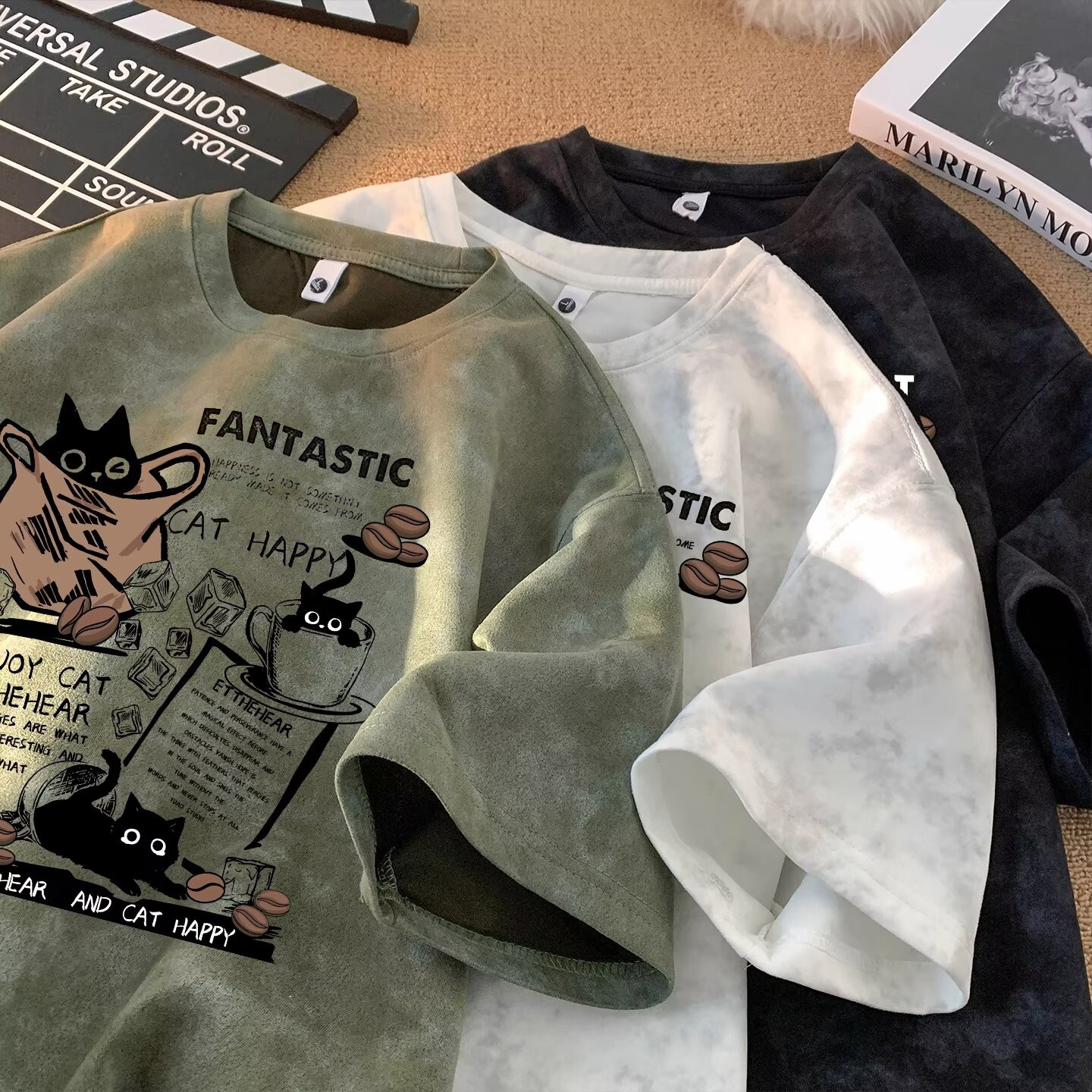 扎染短袖 衣服ins潮牌大码 T恤男女夏季 宽松圆领半袖 体恤 新款 美式