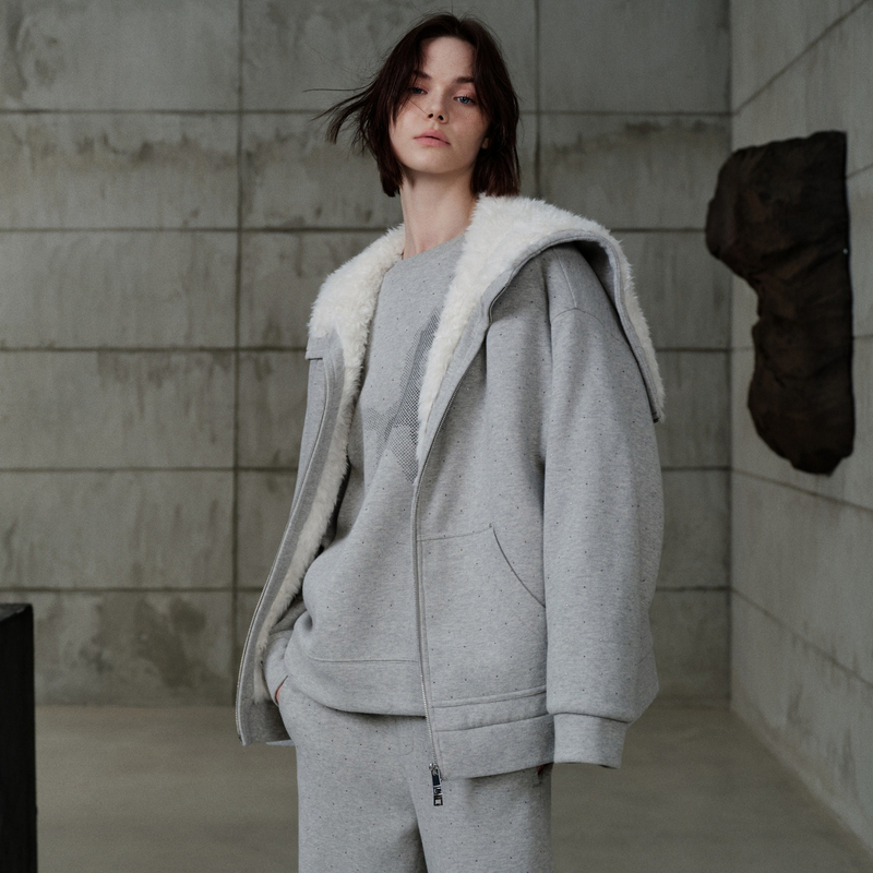 美式 TI尤缇2025冬季 斜襟毛绒拼接卫衣设计感重工外套女 专柜新款
