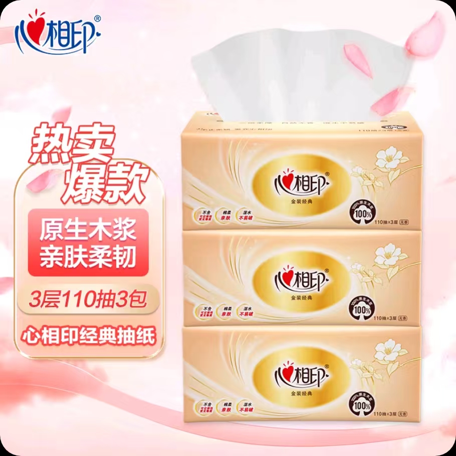 心相印经典 可湿水卫生纸家庭 抽纸110抽3层加厚餐巾纸面巾纸实惠装