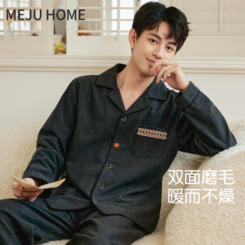 家居服套装 冬季 保暖睡衣法兰绒加厚加绒长袖 蕉内绒绒301Home男士
