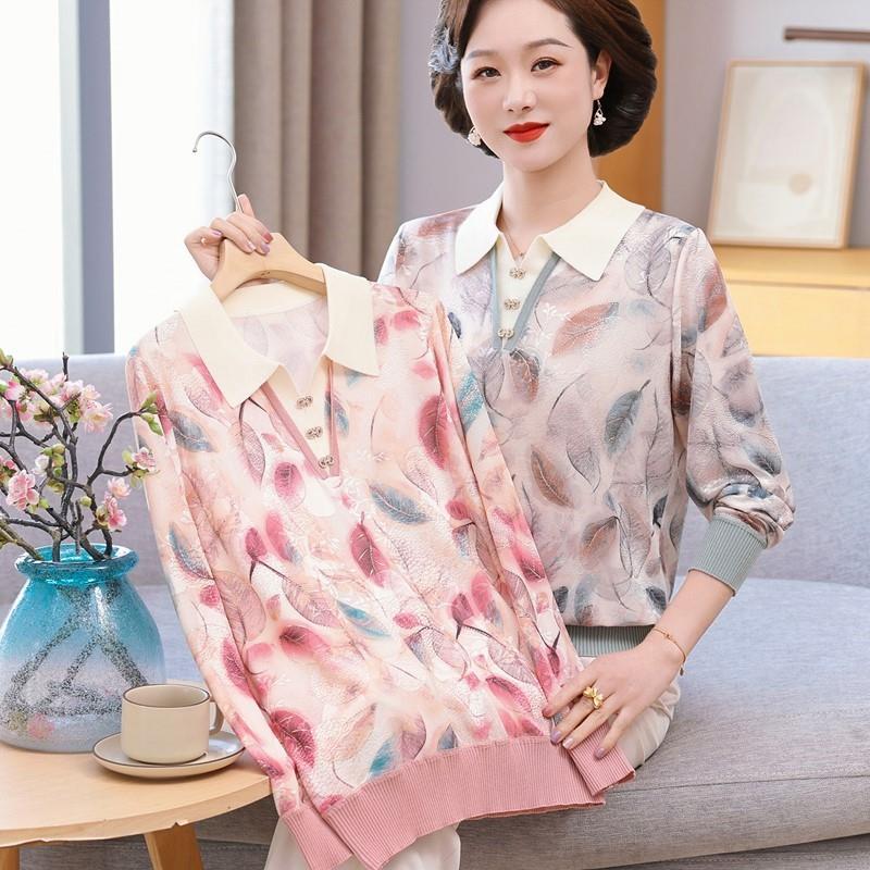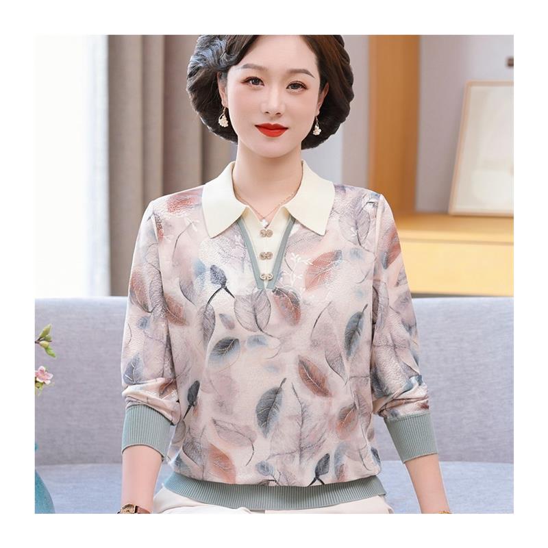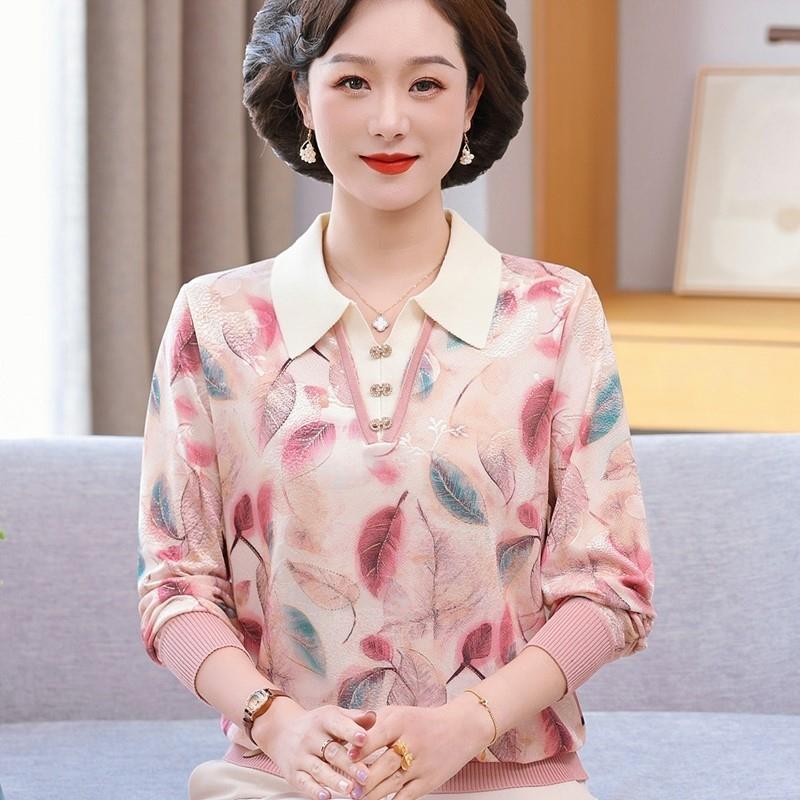 中年妈妈秋装 中老年秋秋时尚 长袖 新款 洋气 翻领T恤打底衫 速发正品
