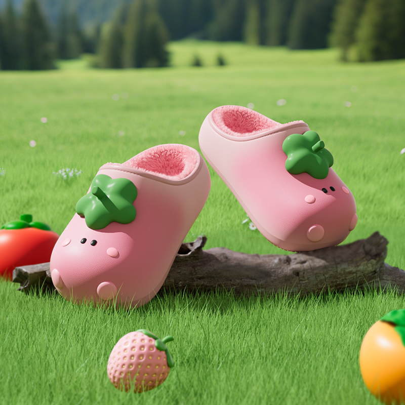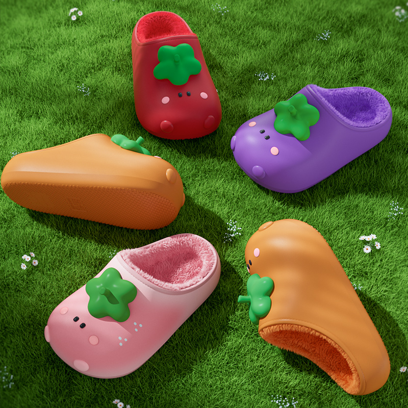 居家室内包头防水保暖情侣毛毛拖 女秋冬季 2025新款 可爱茄子棉拖鞋