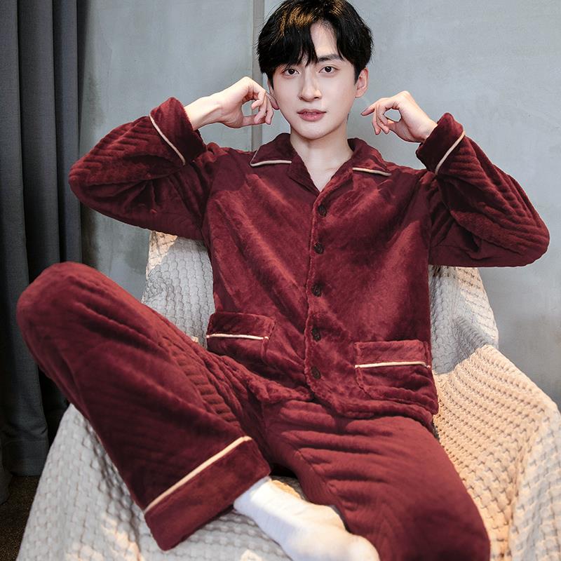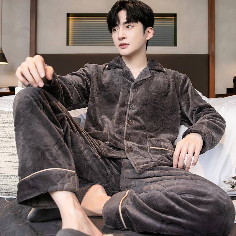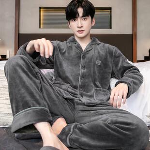 家居服套装 轩靓高级感睡衣男冬季 加绒加厚珊瑚绒薄绒海岛绒春秋款
