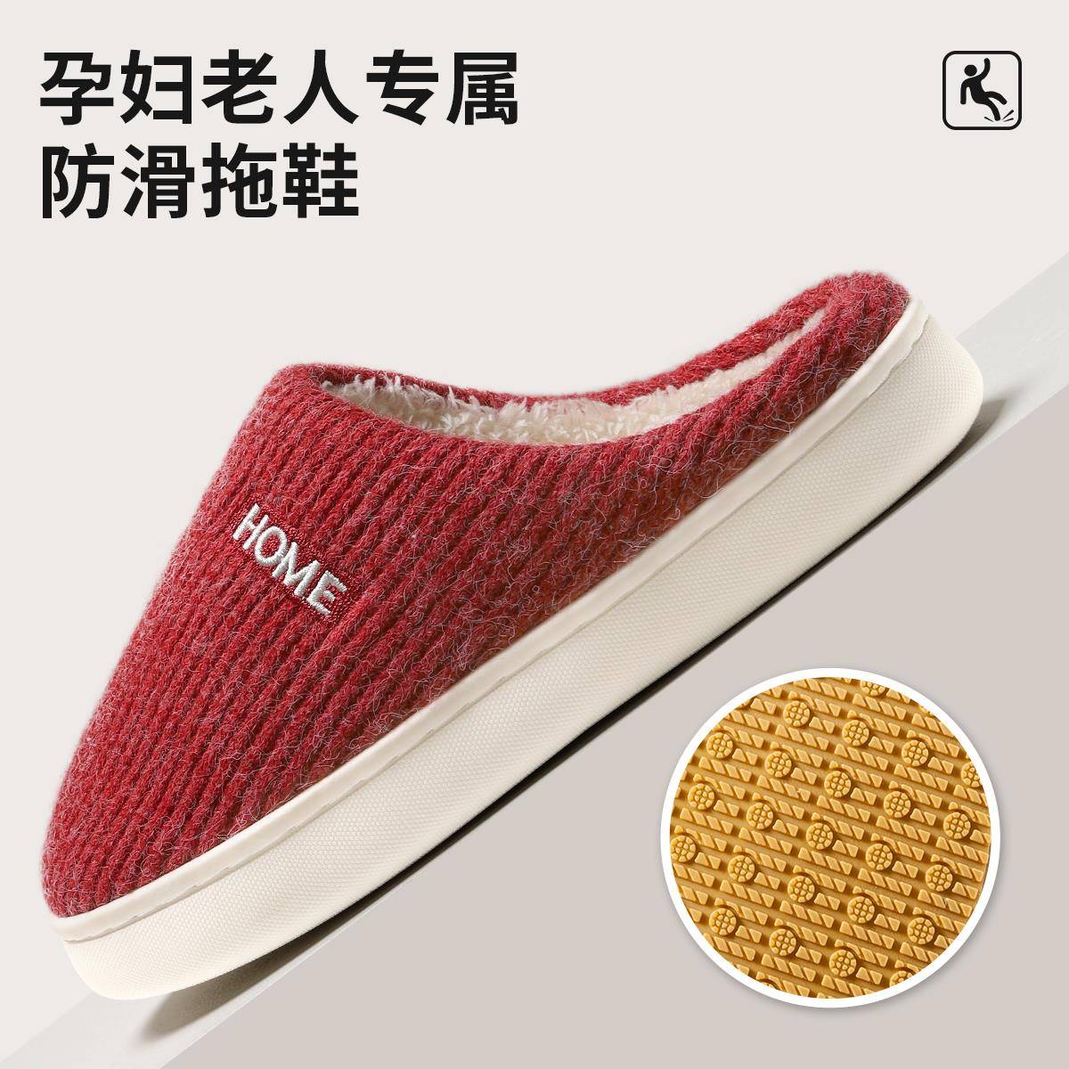 室内家居保暖中老年家用拖鞋 2025新款 冬天 女士冬季 老人防滑棉拖鞋
