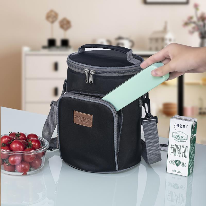 保温饭盒袋子手提饭兜铝箔加厚防水学生上班族圆形饭桶便携便当包