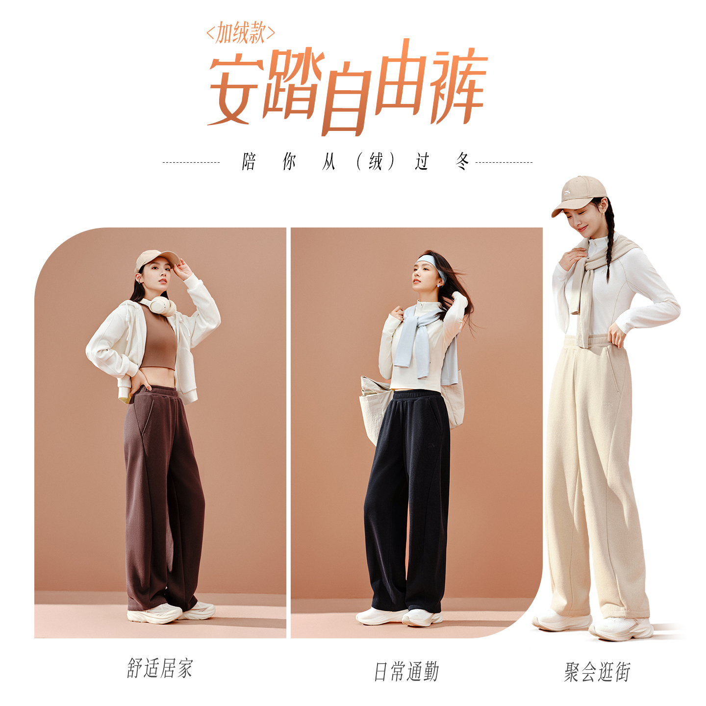 新款 加绒卫裤 针织裤 安踏运动裤 子跑步通勤休闲长裤 秋季 直筒裤 男士