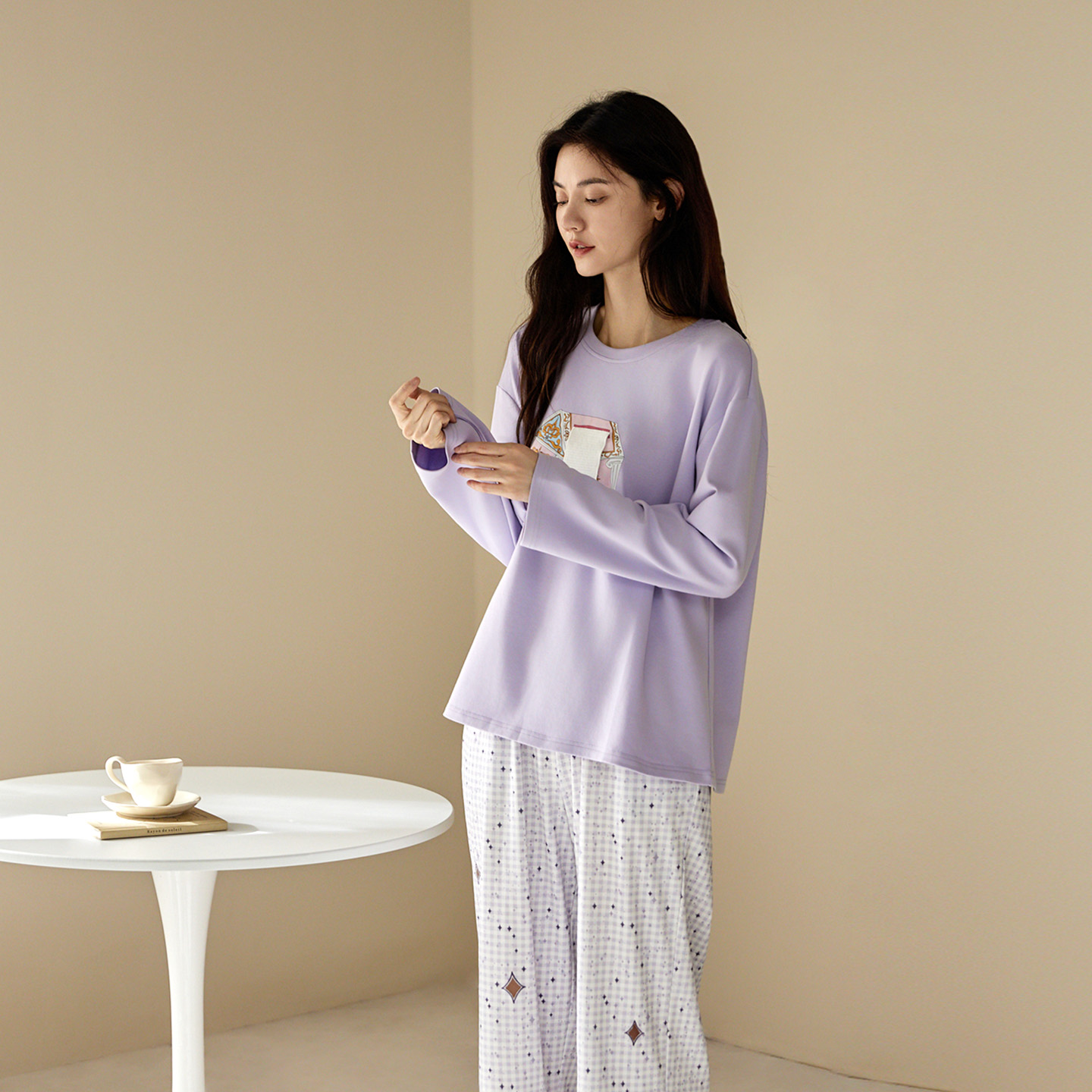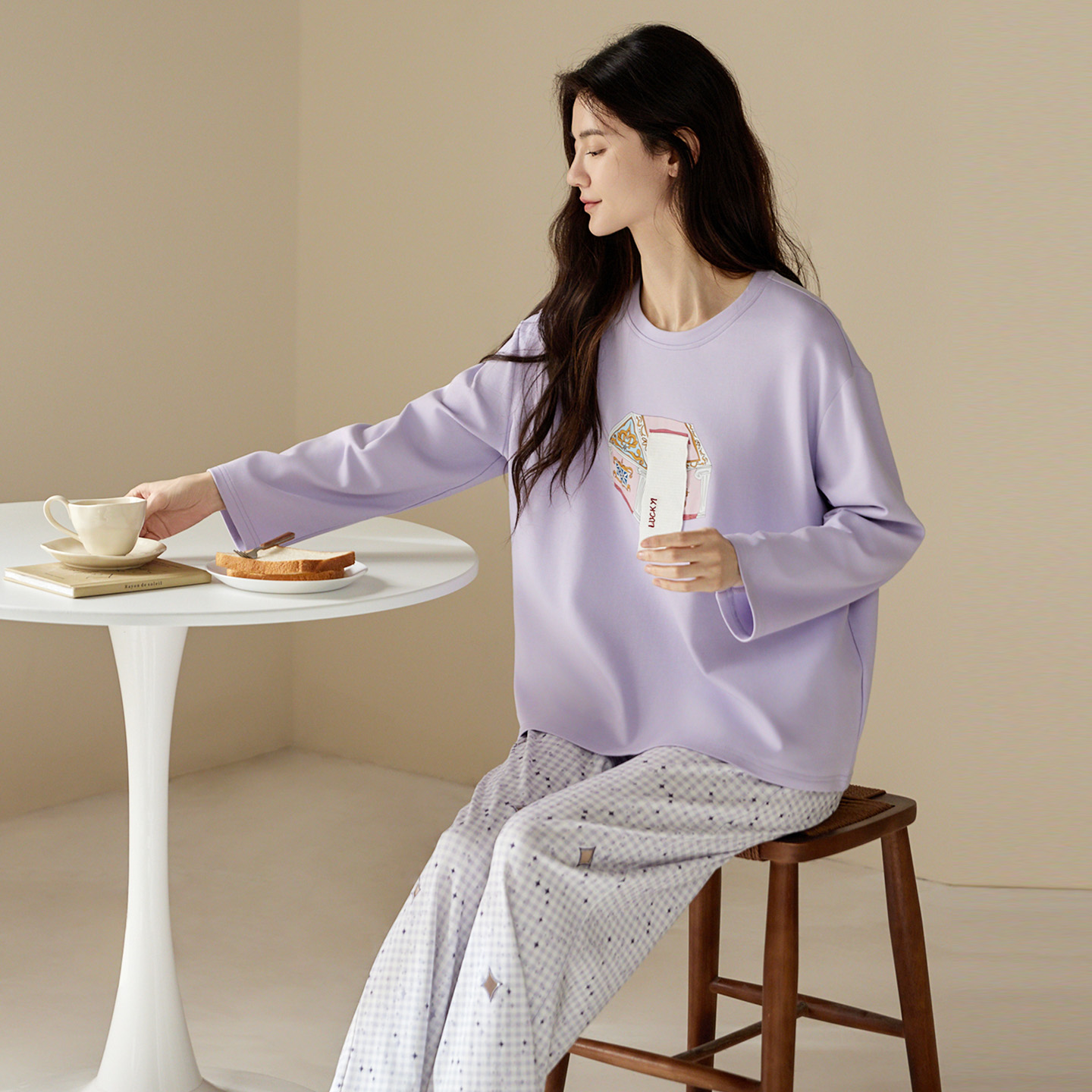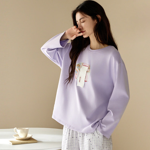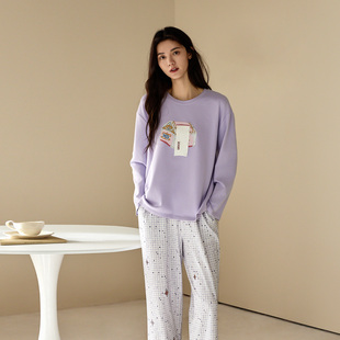 女士套头家居服宽松条纹可外穿 纯棉睡衣套装 ISHUFU 爱舒肤春秋季