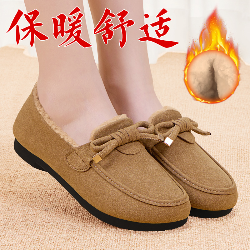 妈妈豆豆鞋 老北京布鞋 加厚保暖一脚蹬正品 加绒毛毛棉鞋 女2025冬季